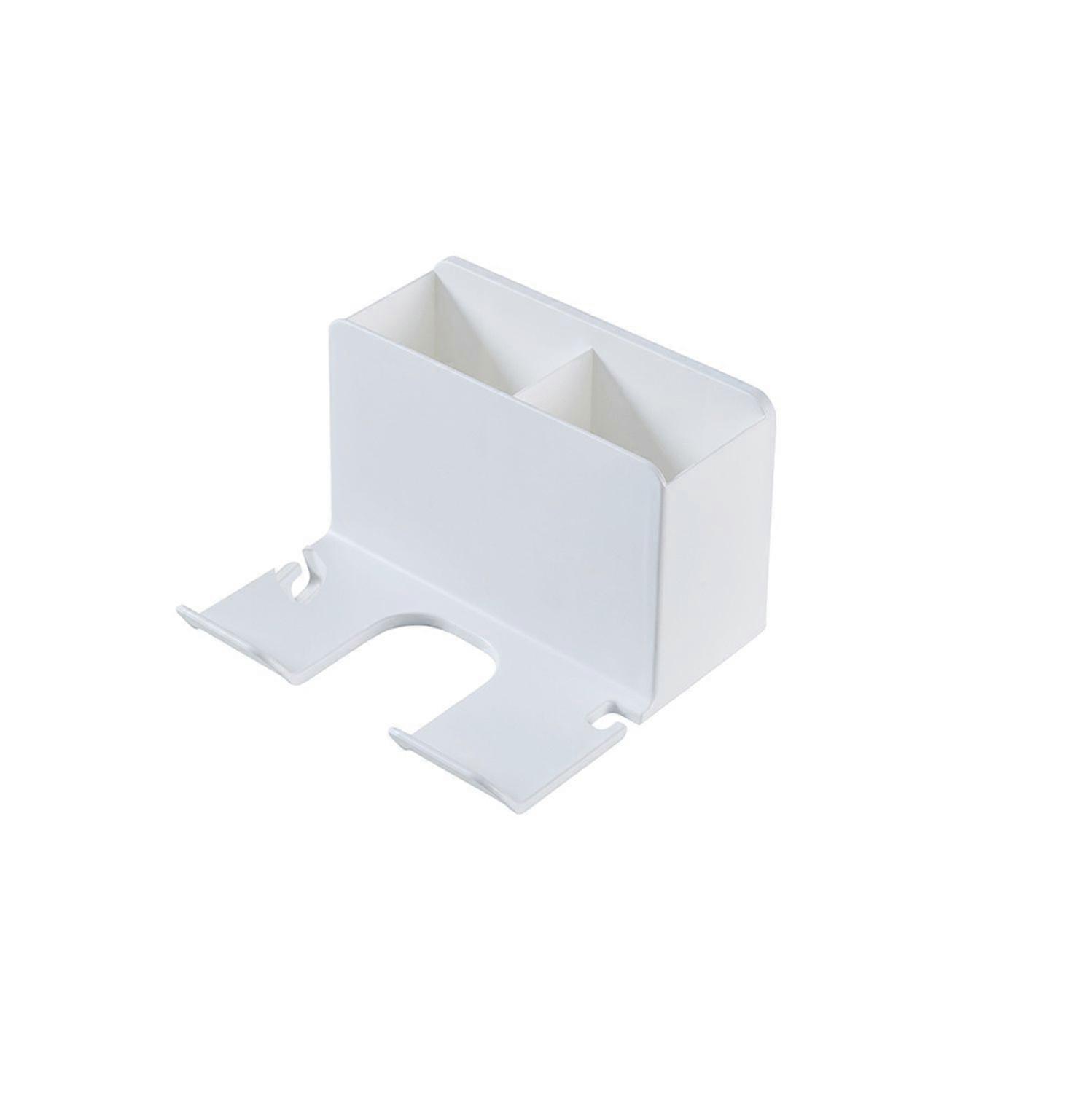Wall Mount Hair Dryer Holder No Drilling Bathroom Organizer with Accessory Holder and Storage for Hair Dryer Brushes, ABS Materials, White, 14.5*14*1