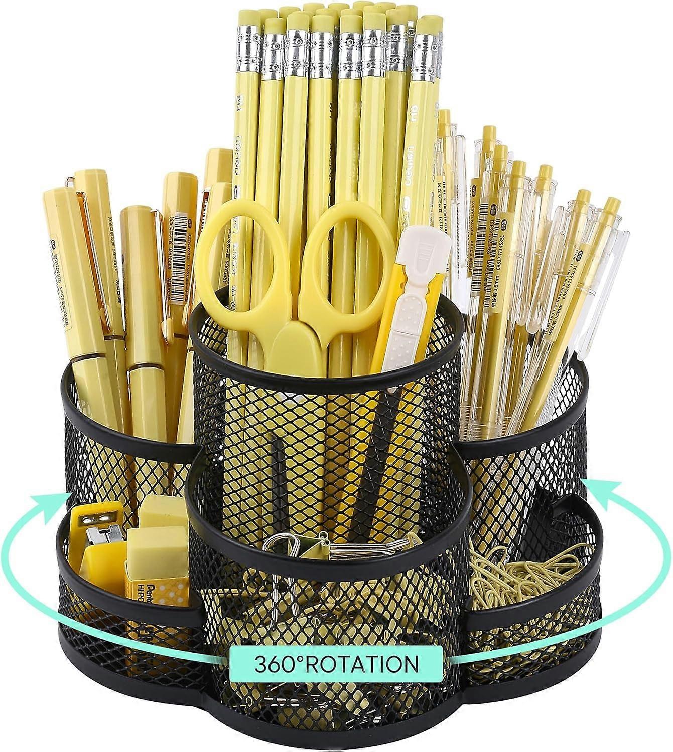 Oop-free mesh desk organizer features 360 degree rotation. The black pen holder rotates smoothly for easy access to each of the 7 sections. Spins smoothly and without resistance. The metal pencil holder is made of quality mesh, sturdy, well made and has no compatible with sharp edges. It has 7 divided sections, which is excellent for you to separate stuff. Reasonable layout of 7 areas, 4 large grids are suitable for pens, markers, scissors, knives; 3 small grids are suitable for paper clips, thumbtacks, dovetail clips, etc. Page 11Page 1 of 1Rotating Desk Pen Holder: Functional Large Desk Organizer: Videos for this product: Customer Review: Good for an office desk, overall very short bins: Videos for this product: Customer Review: lots of compartments: Videos for this product: Customer Review: Works great, Exactly as described 👍: Videos for this product: Customer Review: Perfect for holding tools and other smaller things.: Videos for this product: Customer Review: Small: Videos for this product: Customer Review: Simple and sweet; perfect for low needs/expectations: mesh desk organizer: mesh zipper pouch bags: [360 Degree Rotating Design]: Oop-free mesh pen holder for desk features 360 degree rotation. The black pen holder rotates smoothly for easy access to each of the 7 sections. The industrial design of rotation will last for a long time. [Functional Large Desk Organizer]: Large compartments hold a lot of items, keep everything together and organized. Perfect for your pens, pencils, colored pencils, markers, brunches, sharpies, scissors, highlighters, crayons, and art supplies. [7 Divided Section]: The metal pencil holder is made of quality mesh, sturdy, well made and has no compatible with sharp edges. It has 7 divided sections, which is excellent for you to separate stuff. Reasonable layout of 7 areas, 4 large grids are suitable for pens, markers, scissors, knives; 3 small grids are suitable for paper clips, thumbtacks, dovetail clips, etc. [Space Saver]: The computer desk organizer is compact but big enough to hold a lot of items. It holds everything you will ever need for your desk. Will definitely help save space on your desk. [Multiple Uses]: The rotating pen holder has tons of uses, not just for pens. It’s also great for holding remote control, sewing tools, scissors, glasses and etc. Perfect for students, kids, teachers, or home organization. Keep desk clutter free.