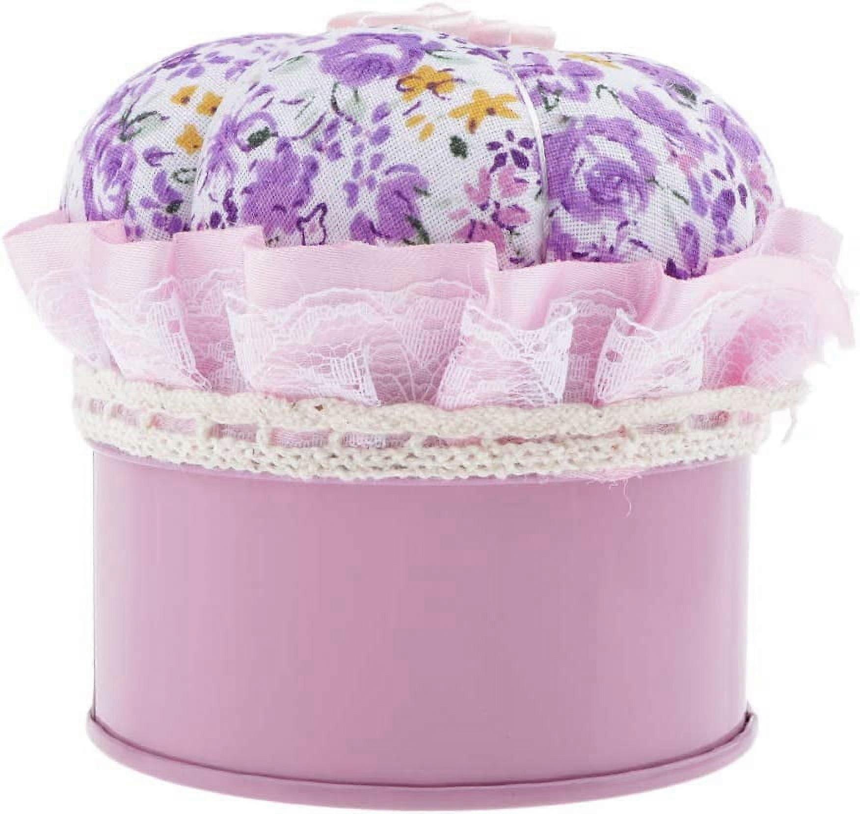 LoveinDIY Iron Metal Storage Jar for Ball Head Quilting Pins with Pin Cushion Lid for Easy Sewing - Purple