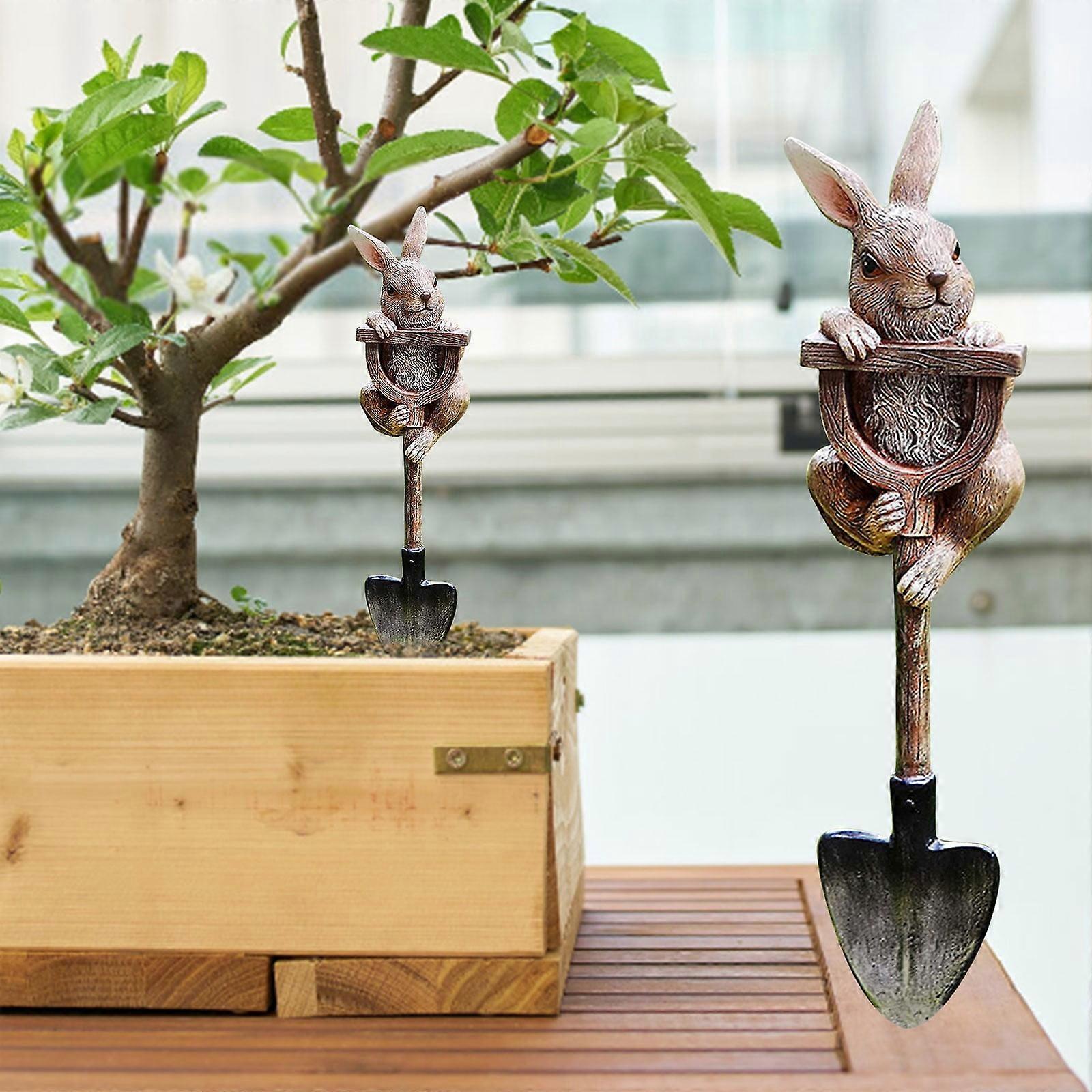 Rabbit on Shovel Resin Garden Decor, Frog Sculpture Green, Hand-Painted, Protective Coating, for Indoor & Outdoor, Lawns, Patios, Gardens