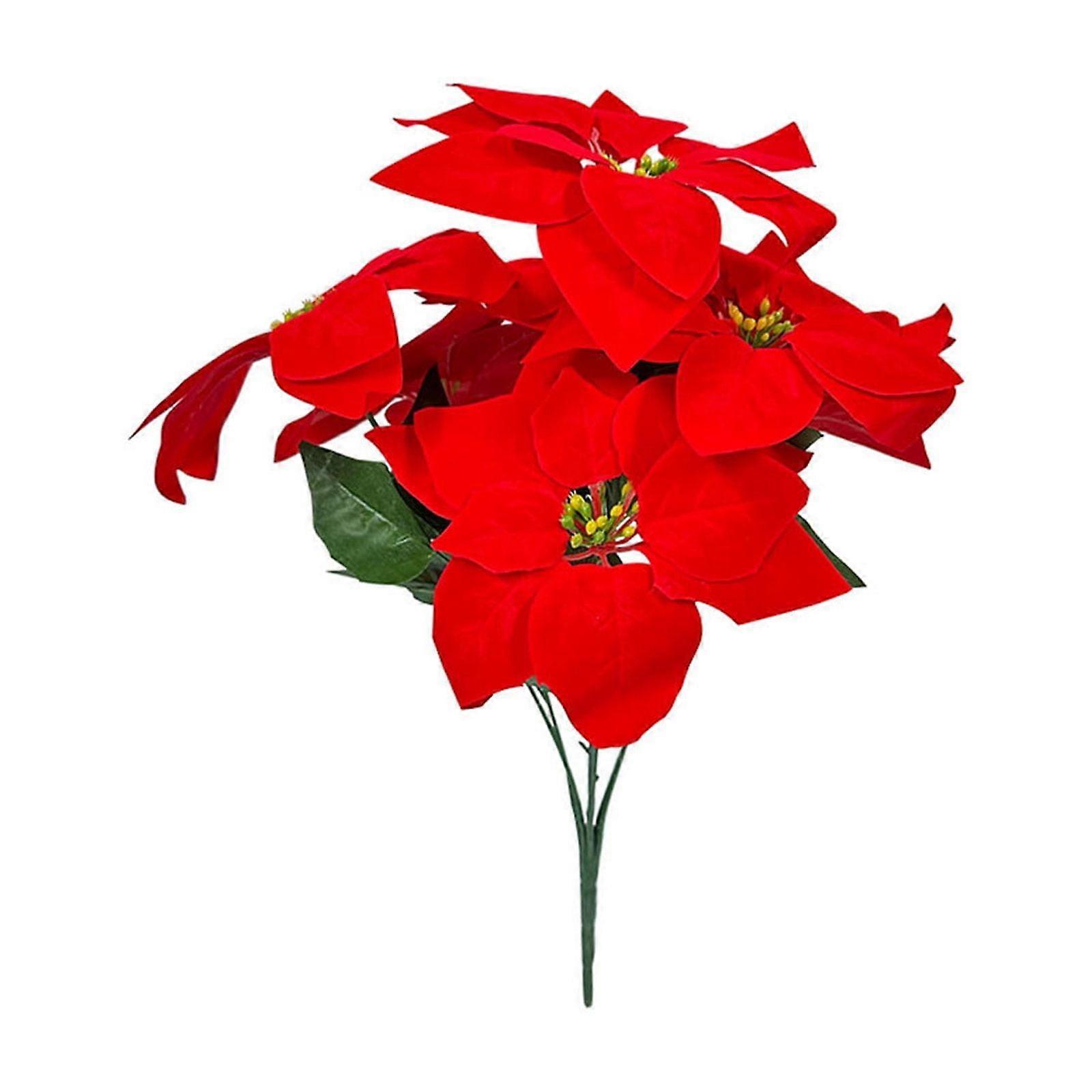 Artificial Poinsettia Flowers Bouquet, 7 Heads Faux Red Poinsettia Bush, Fake Flowers for Home, Porch, Xmas Tree, Garden, Indoor, Outdoor, Office,