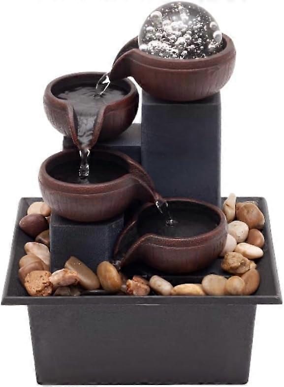 Indoor Desktop Fountain 4-Tier Desktop Fountain with Warm LED Lights & 3-Speed Adjustable Pump - Ideal for Bedrooms, Offices & Home Décor