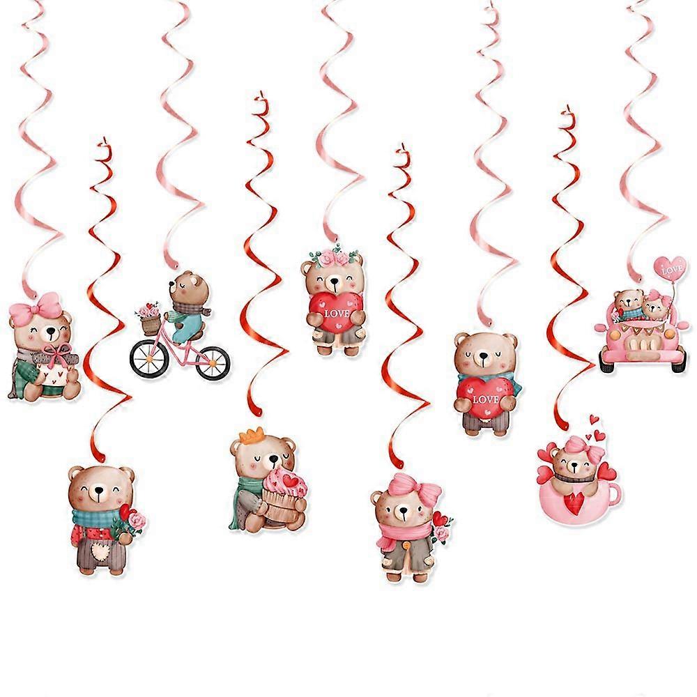 Bear theme Valentine's Day flag pull flower Valentine's Day party room decoration layout spiral pendant 9 pieces spiral pendant