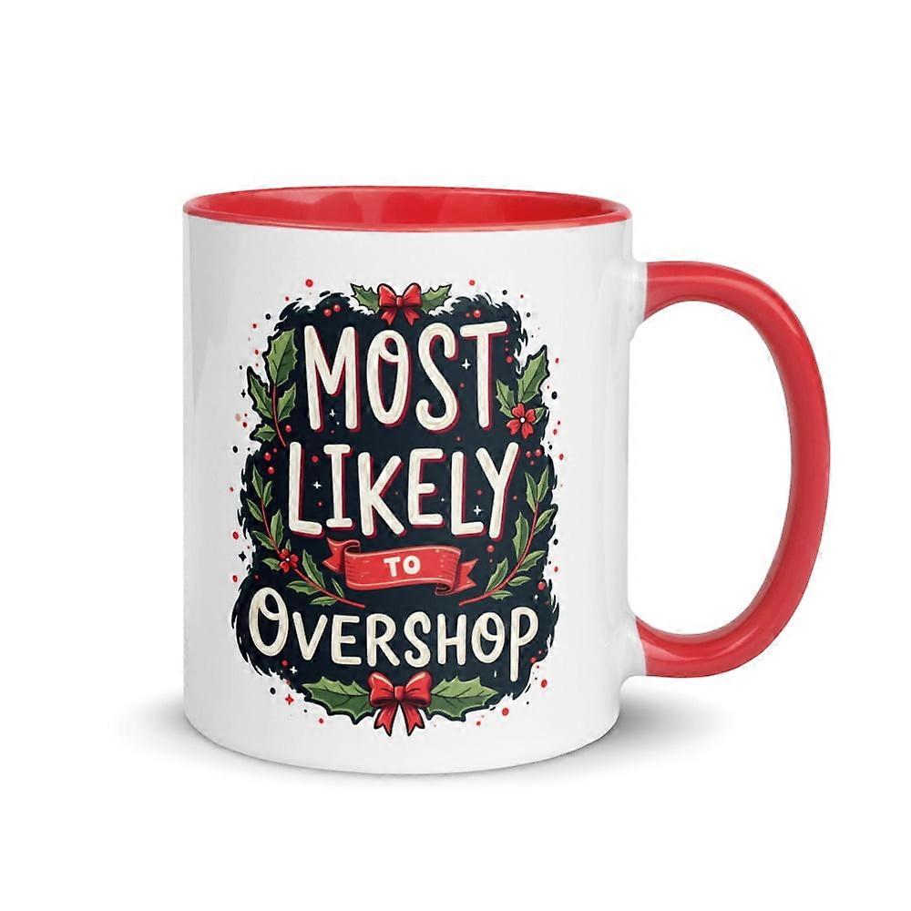 Family Matching Xmas Mug with Color Inside, Most Likely To Overshop Christmas Present (Red, 11 oz)