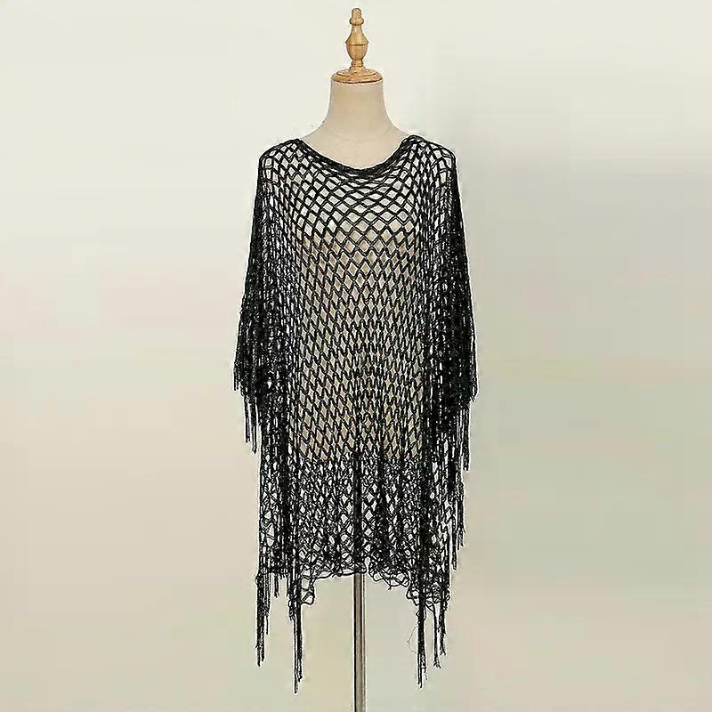 Sexy Lace Shawls for Women Solid Color Gold and Silver Wire Hollow Out Long Pareos with Tessles Muslim Female s Stole