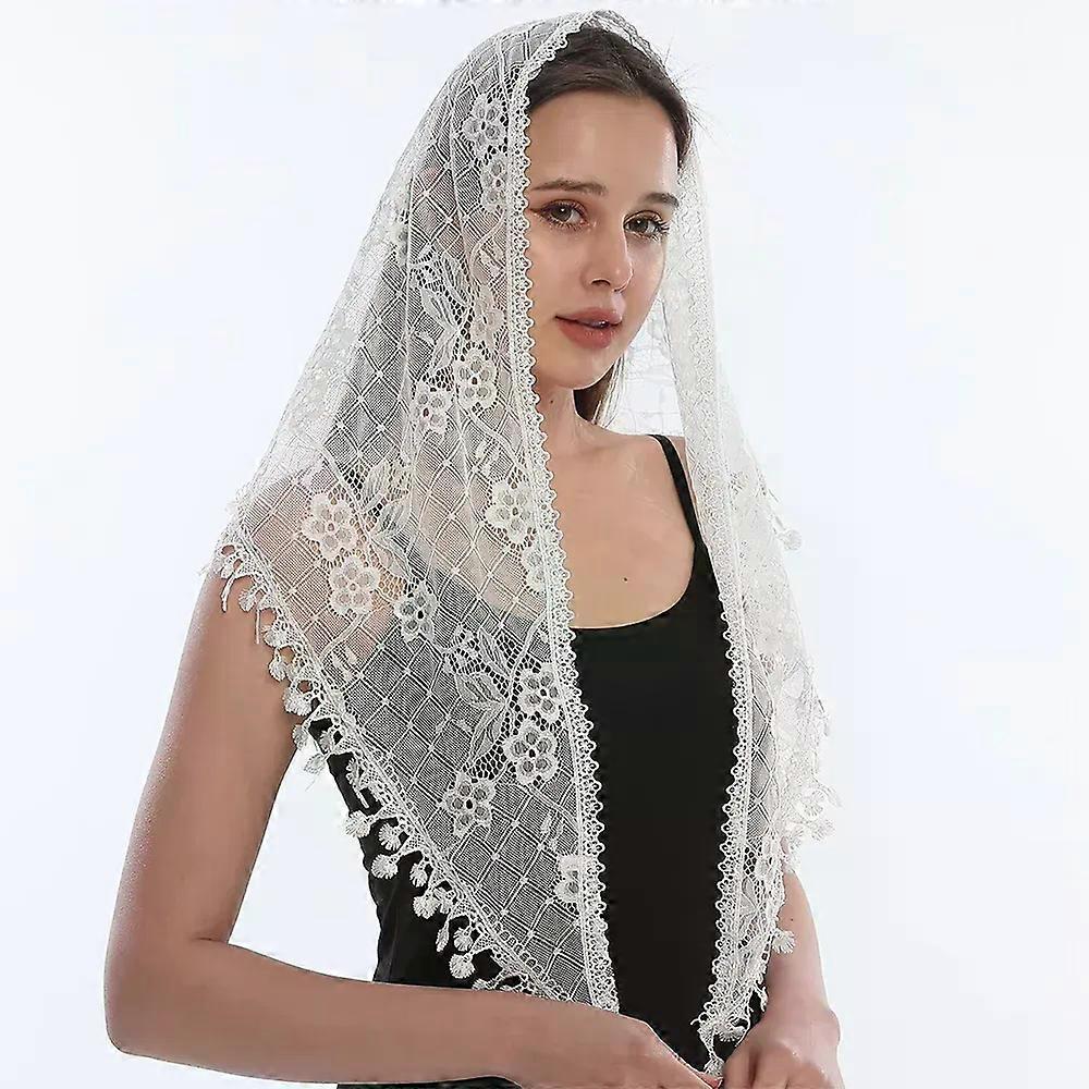 Women s Triangle Scarf Solid Color Lace Hollow Out Veil Muslim Church Round Headcloth Islam Wedding Mantilla Turban