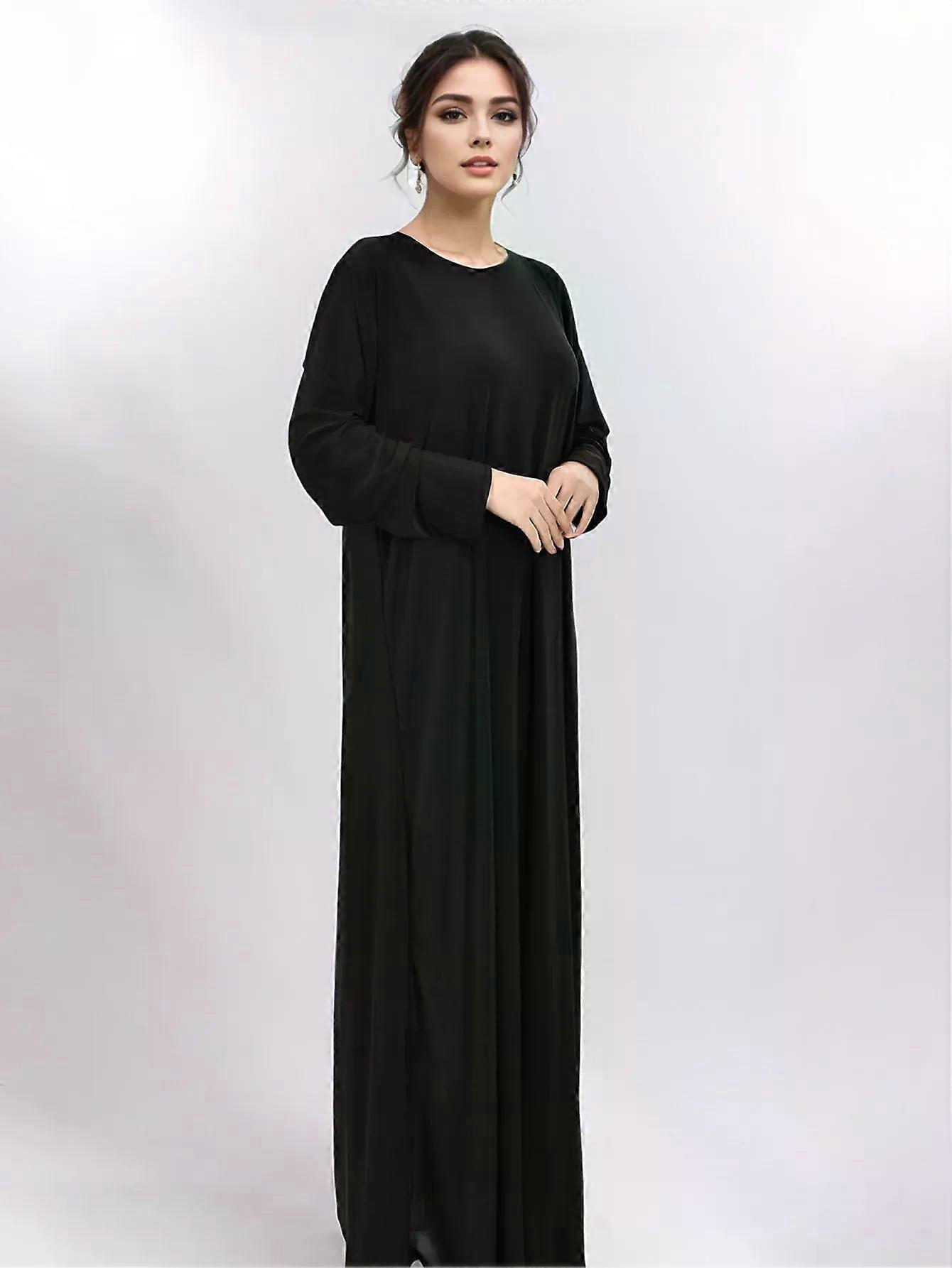 Ramadan Eid Black Muslim Abaya Dress Woman Solid Color Pullover Abaya Lady Simple Islam Clothing Long Dress