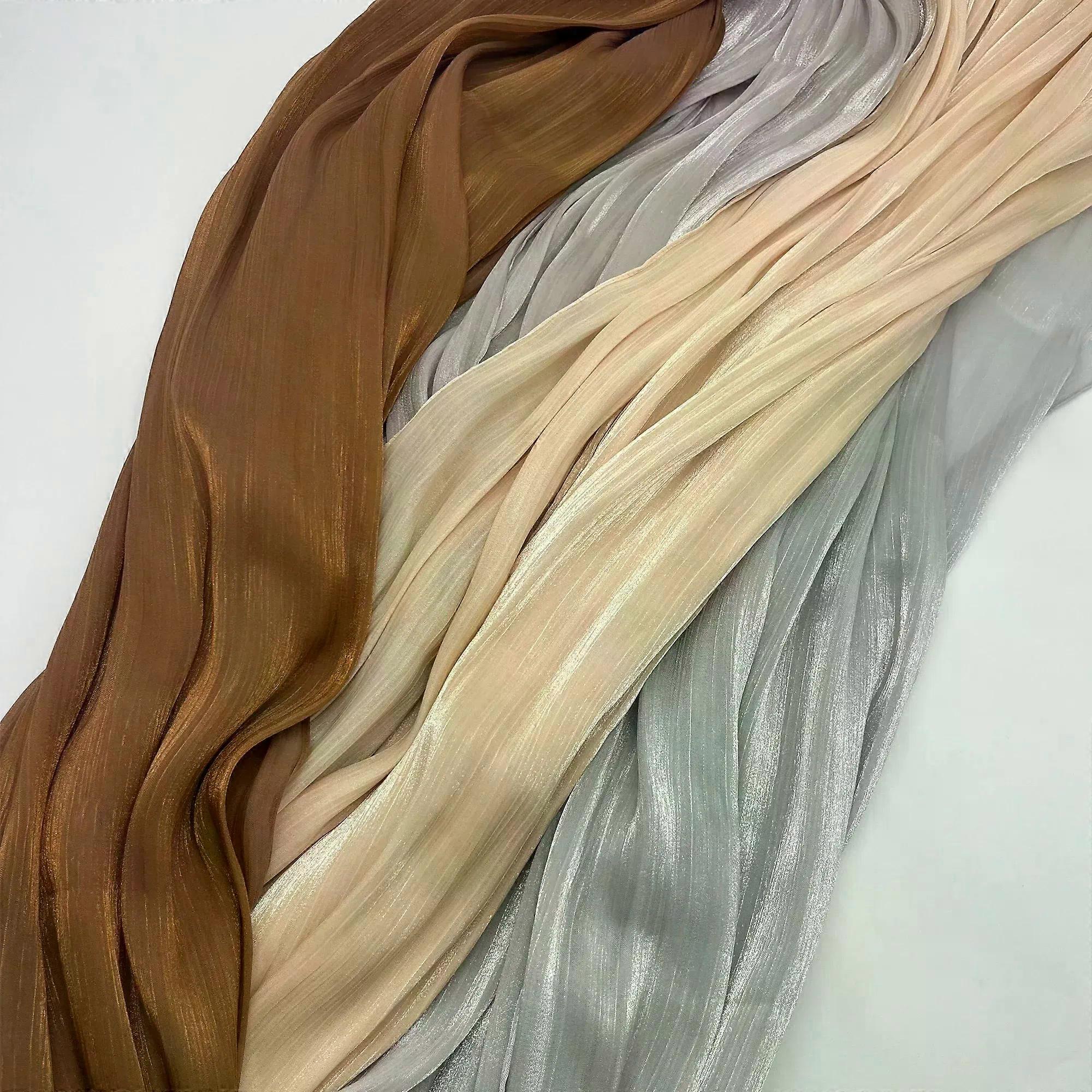 Newest Plain Shimmer Hijab Silk Wrinkle Scarf Muslim Woman Hijab Shawls Islam Woman Long Wraps Femme Headband Pure Turban