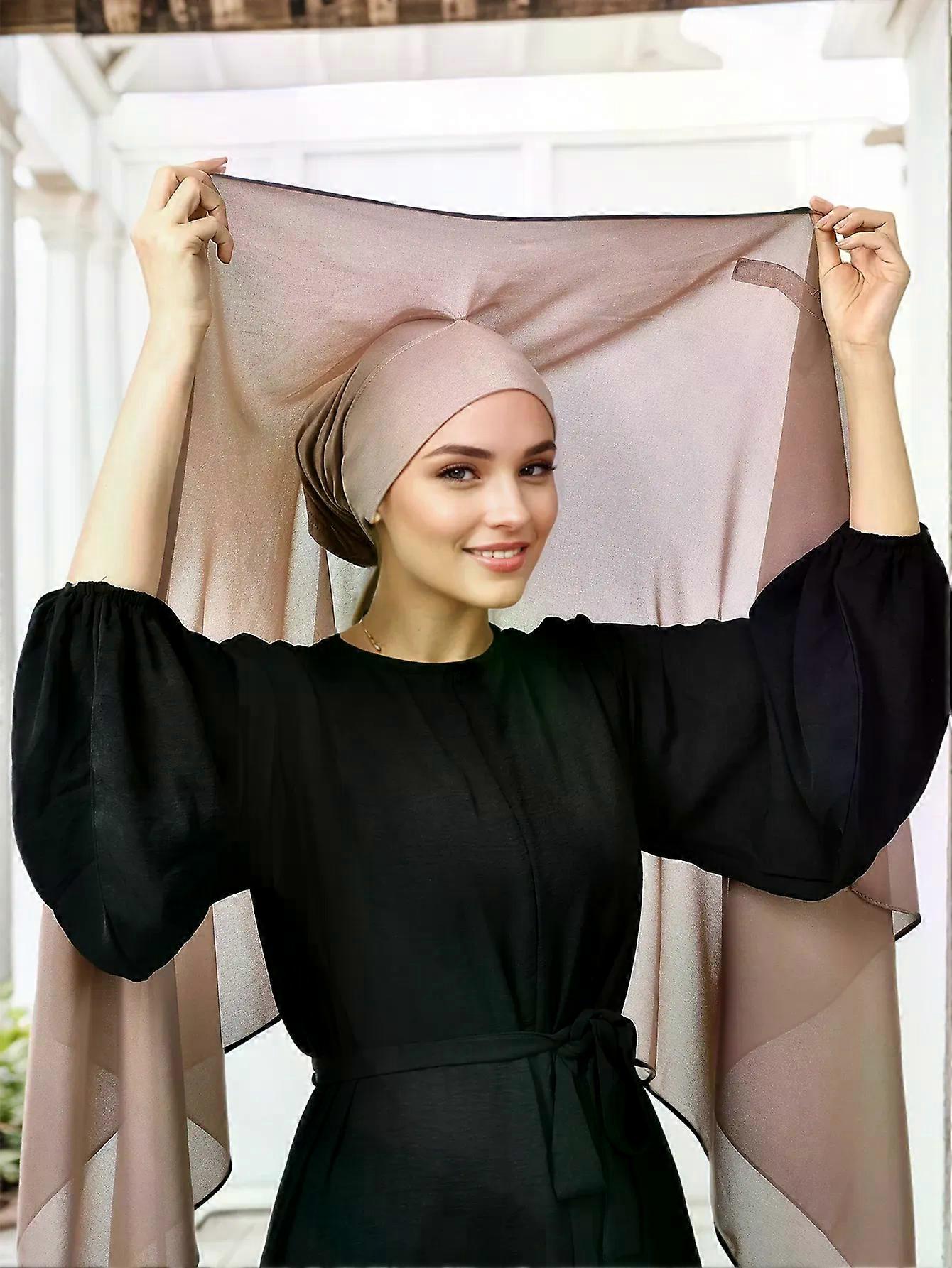 Women Chiffon Hijab With Magnetic Buckle Solid Color Pearl Chiffon Scarf Muslim Instant Hijab Islamic Turban