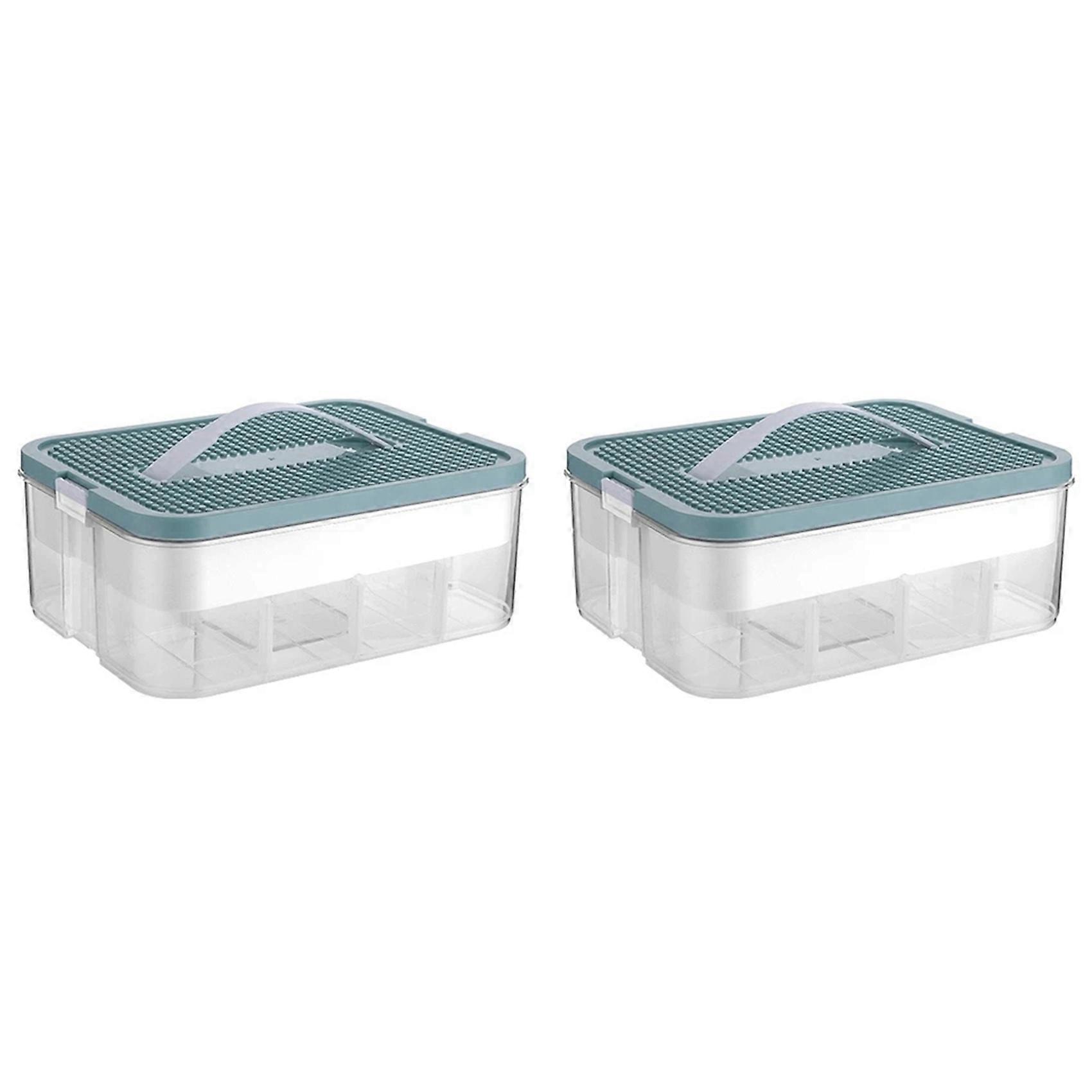 2X Kids Building Blocks Storage Box Stackable Toys Organizer Storage Case Adjustable Sundries Container,Green-A