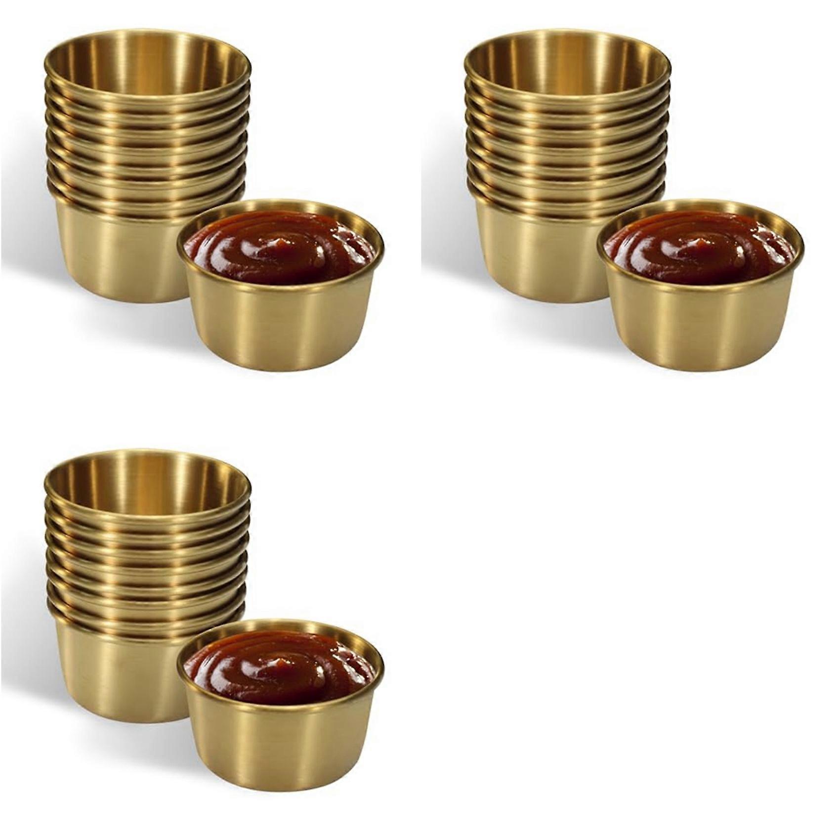 18Pcs 2 Oz Stainless Steel Dipping Sauce Cup, Mini Dip Bowls, Reusable Metal Condiment Cups Ramekins Containers (Gold)