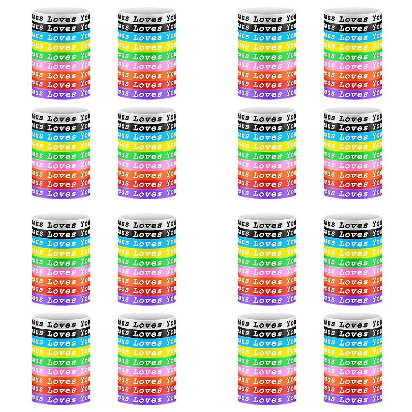 144Pcs Jesus Loves You Silicone Wristbands Colorful Rubber Bracelets Christian Silicone Wristbands Adult Youth