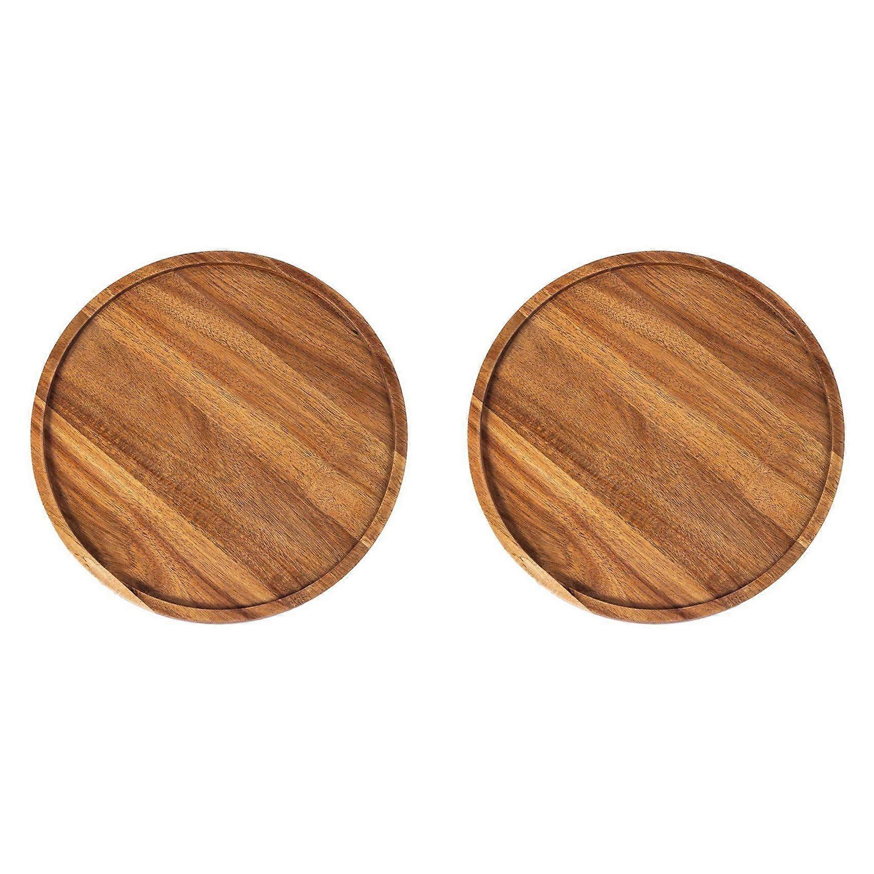 2X Round Wood Tray,Wooden Serving Tray,Serving Platter,Appetizer Charcuterie Board,Tray Organizer B
