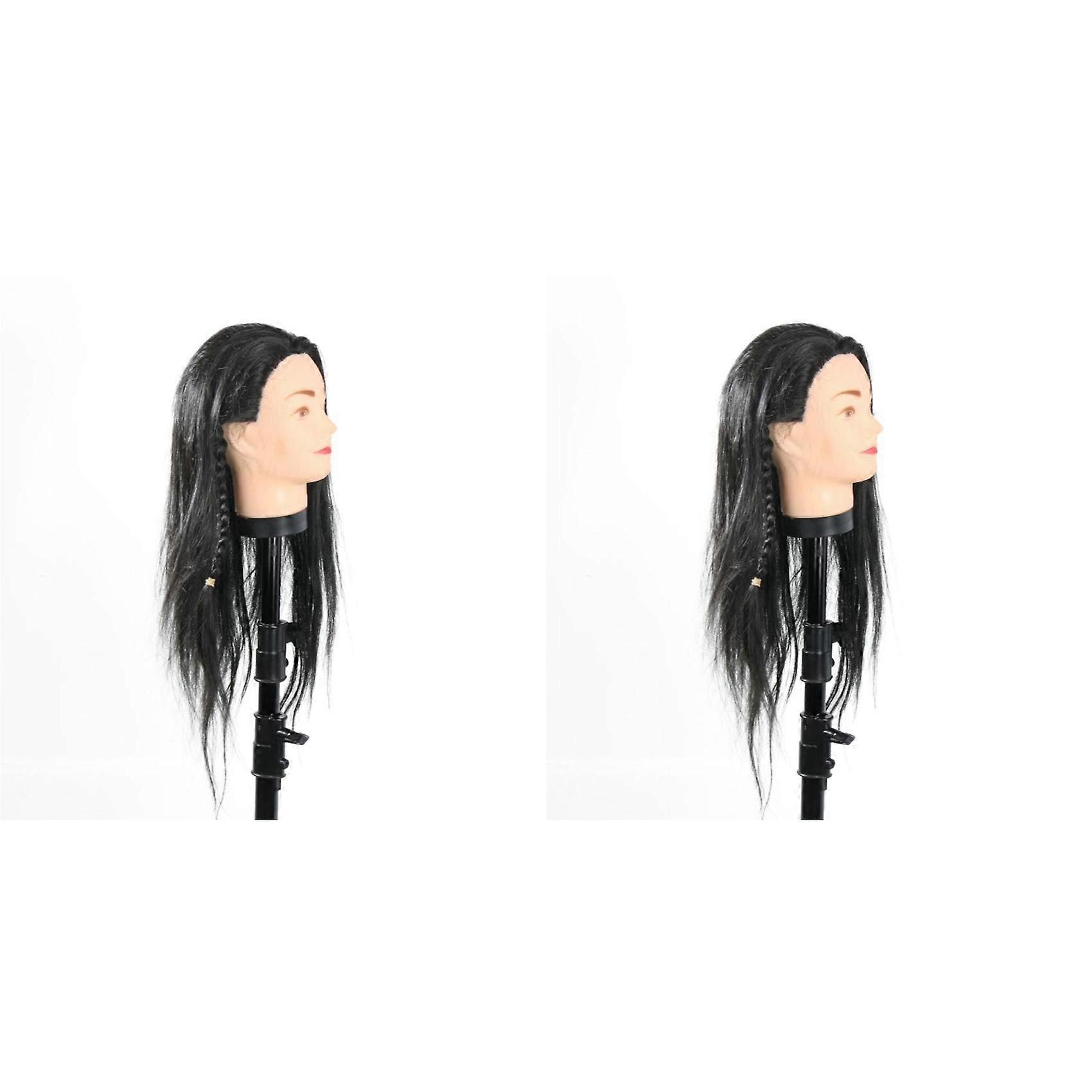 2pcs 40cm Mannequin Head Long Black Hair Wigs Styling Training Practice Hairdressing Dolls Manikin Wig Dummy Head Model