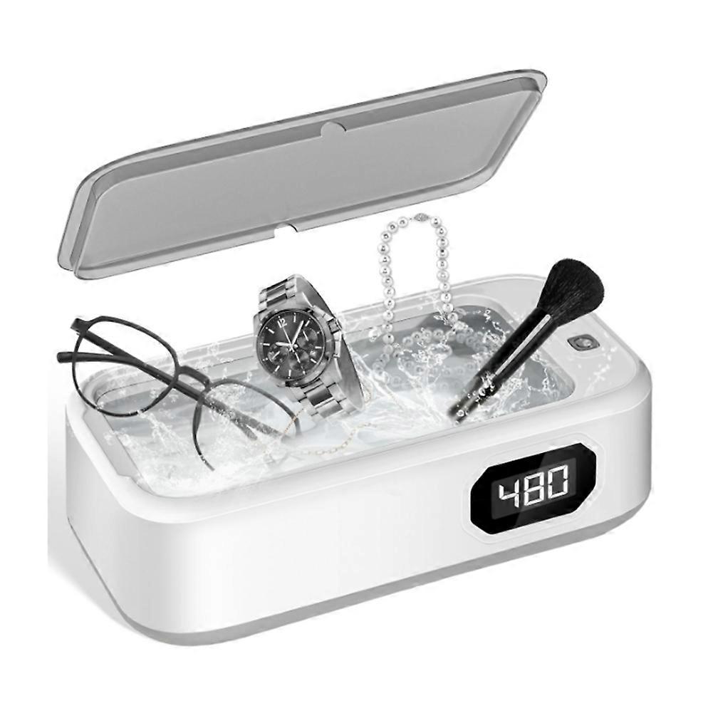 Features 1. 49000KHz, use tap water to clean dirty jewelry in 90 seconds, 180s to clean glasses, 280s to clean toothbrushes, 380s to clean dentures, 480s to clean cosmetic cleaning brushes, etc. 2.Multi-purpose ultrasonic cleaner for cleaning jewelry, rings, glasses, dentures, watch coins, etc. 3.Extra large capacity: 500-700ml capacity is enough to thoroughly clean one or more items at a time, saving your time. In addition, the jewelry cleaner is small enough that it won't obstruct desk space, you can place it on your dresser or vanity. Product Attributes Material: ABS +304 stainless steel Capacity: 500-700ml Voltage: 210-240 volts Rated power: 48 watts Frequency: 49000HZ Plug Type:US Plug,it applies to Canada, India,Mexico, Thailand, the United States, the Philippines,Taiwan and so on. Voltage: AC110V Color: White Package Contents: 1 x Ultrasonic Cleaner