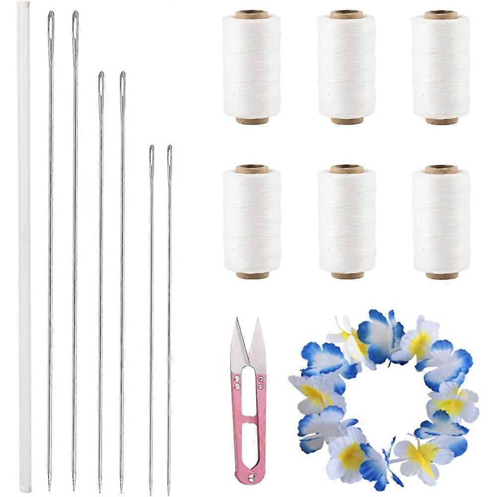 Lei Needle Kit, 6 Pcs Extra Long Sewing Needles 6 Rolls Lei Needle Twine 1 Needle Storage Tube 1 Sewing Scissors,for DIy