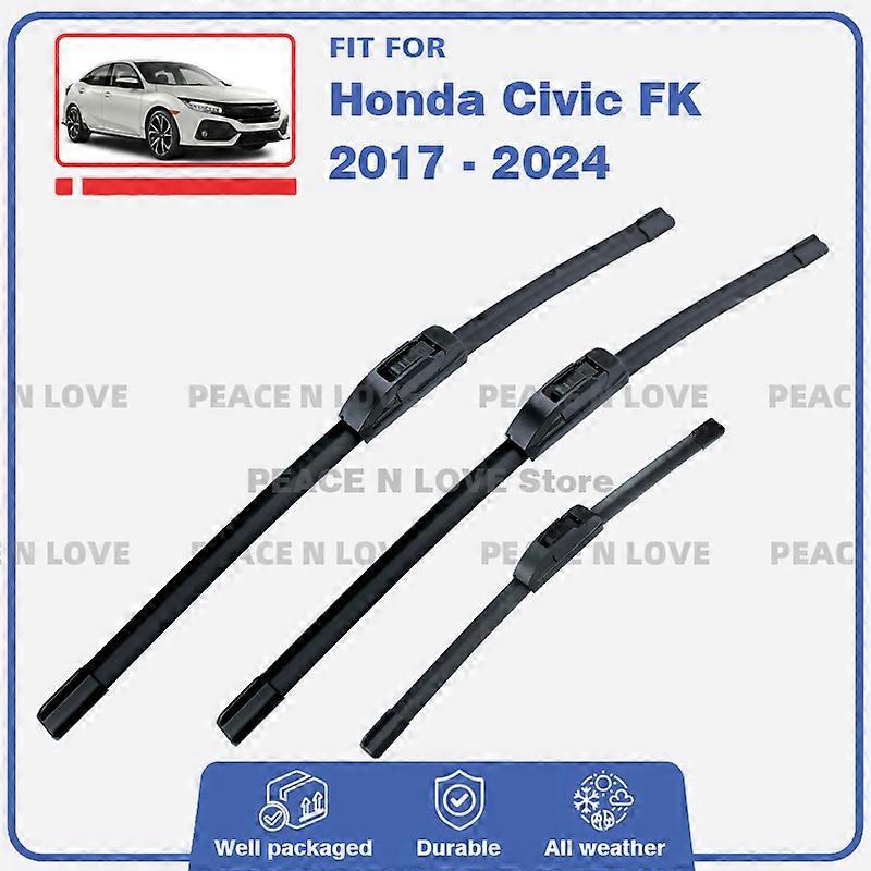 Applies to Front Rear Wiper Blades For Honda Civic FK 2017 - 2024 Hatch 3PC Windscreen Windshield Window Rubber Brushes Car Accessories