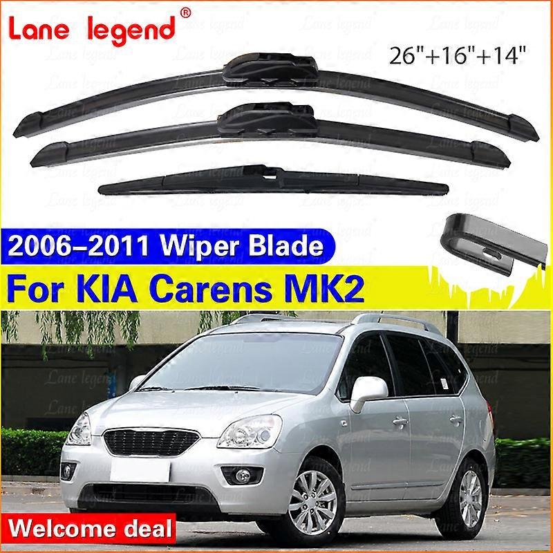 Specifications:High-concerned chemical:None::Year:2006,2007,2008,2009,2010,2011:Special Features:Protect your car:Item Weight:0.35kg:Item Height:5inch:Item Width:10inch:External Testing Certification:BQB:Model Name:1::Origin:Mainland China:Material:Rubber:OEM NO.:01:Car Front Rear Wiper Blades For KIA Carens MK2 Rondo Rondo7 UN 2006 2007 2008 2009 2010 2011 Windshield Rubber Car Accessories:Specification:: Unused (Quality Checked before shipping).:Material: High Grade Natural Rubber.:Made: Made in China.:Instruction: This item doesn't come with manual installation.:Feature::1.Easy installation and perfect replacement.:2.Tension:memory applies even pressure along the entire blade length and achieve:seamless fit with the car windshield, achieve noise-free scraping test:and keep the scraping test clear.:3.Made form pure nature rubber delivers the ultimate smooth, clean, chatter-free wipe.:4.Deflector design based on aerodynamic principles. The vibration of the car wiper caused by wind force is eliminated.:5.Prevents ice and snow build-up from the exposure of metal/plastic components,wiper can against extreme cold snowstorm.