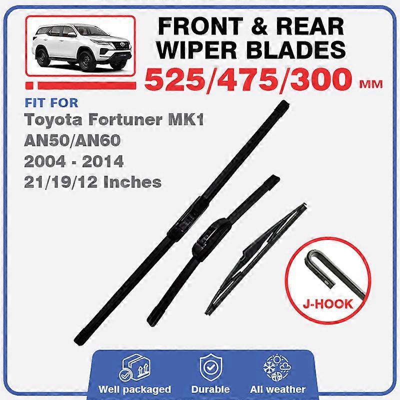 Applies to For Toyota Fortuner MK1 AN50 AN60 2004 - 2014 Front Rear Windshield Wiper Blade Windscreen Brush Rubber J Hook Refill 21"19"12"