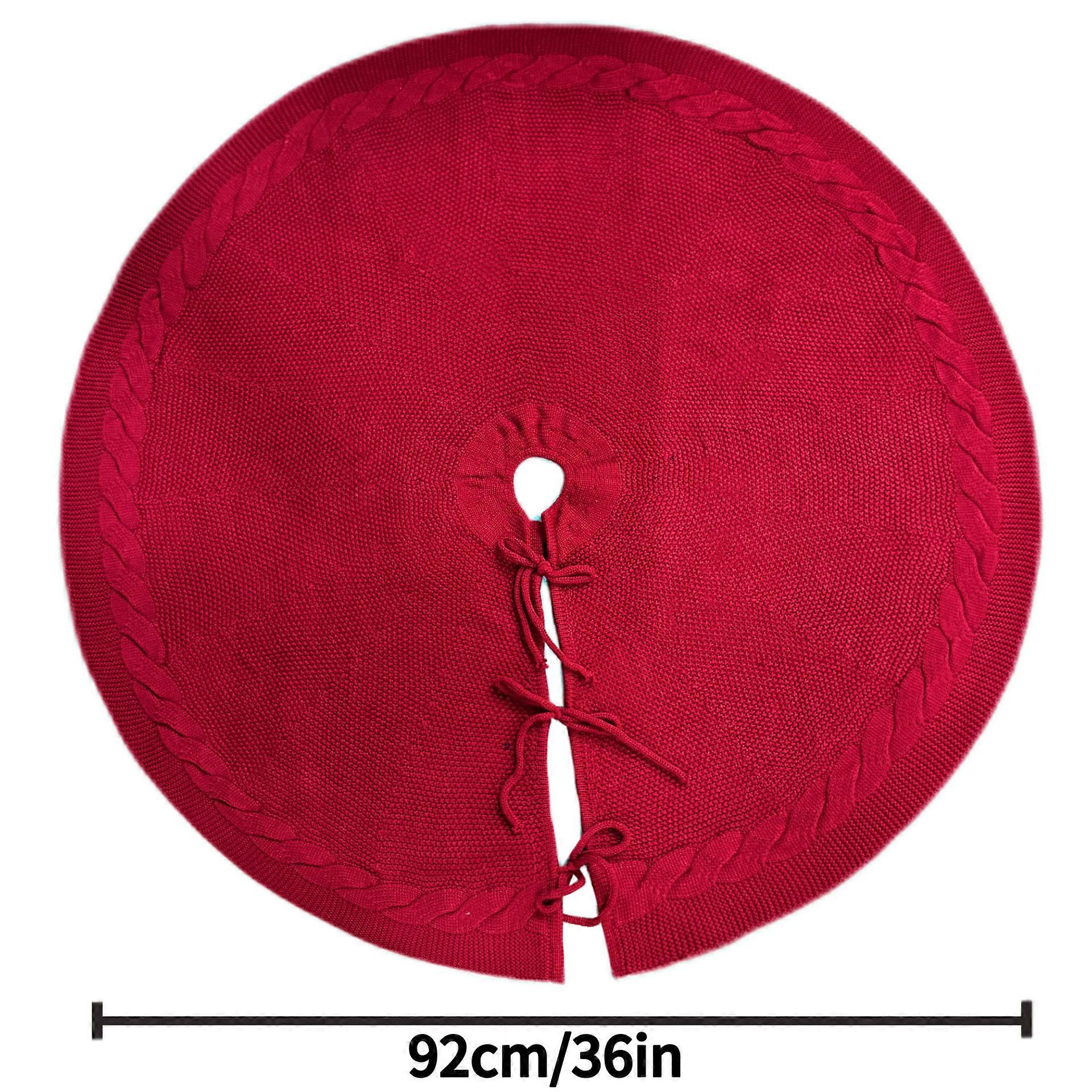 Christmas Knitted Tree Skirt Red Creamy White Knitted Christmas Tree Skirt Around Carpet Christmas Tree Base Decoration Diameter 92CM/36 Inches [Red