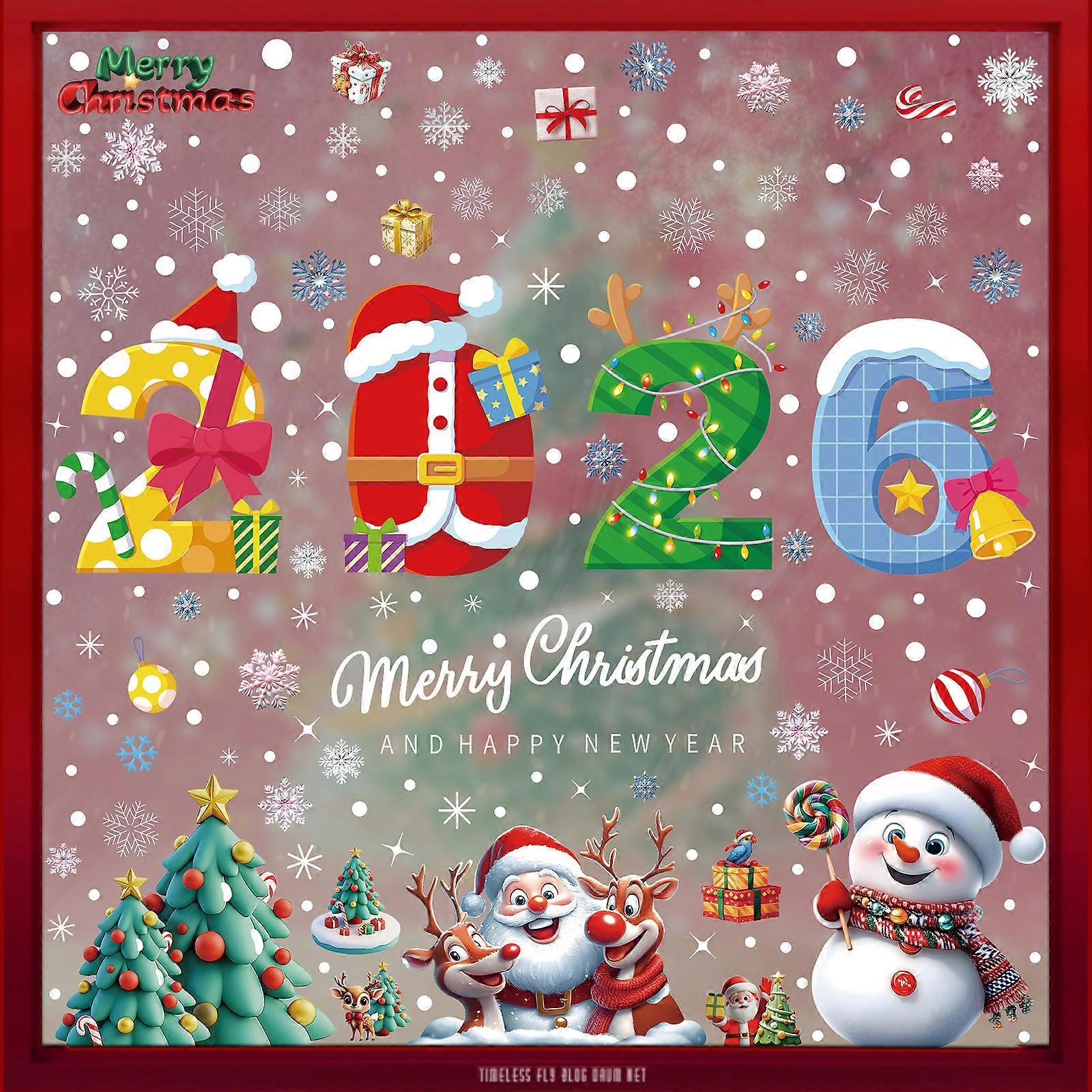 2026 New Christmas Decorations Colorful Creative Candy Cane Bells Static Stickers Merry Christmas Glass Stickers [4 Combinations] BQ485+486+489+528