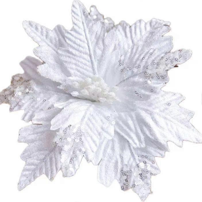 Christmas decorations simulation Christmas flowers fabric flower arrangement decorative ornaments velvet sequins Christmas flowers white