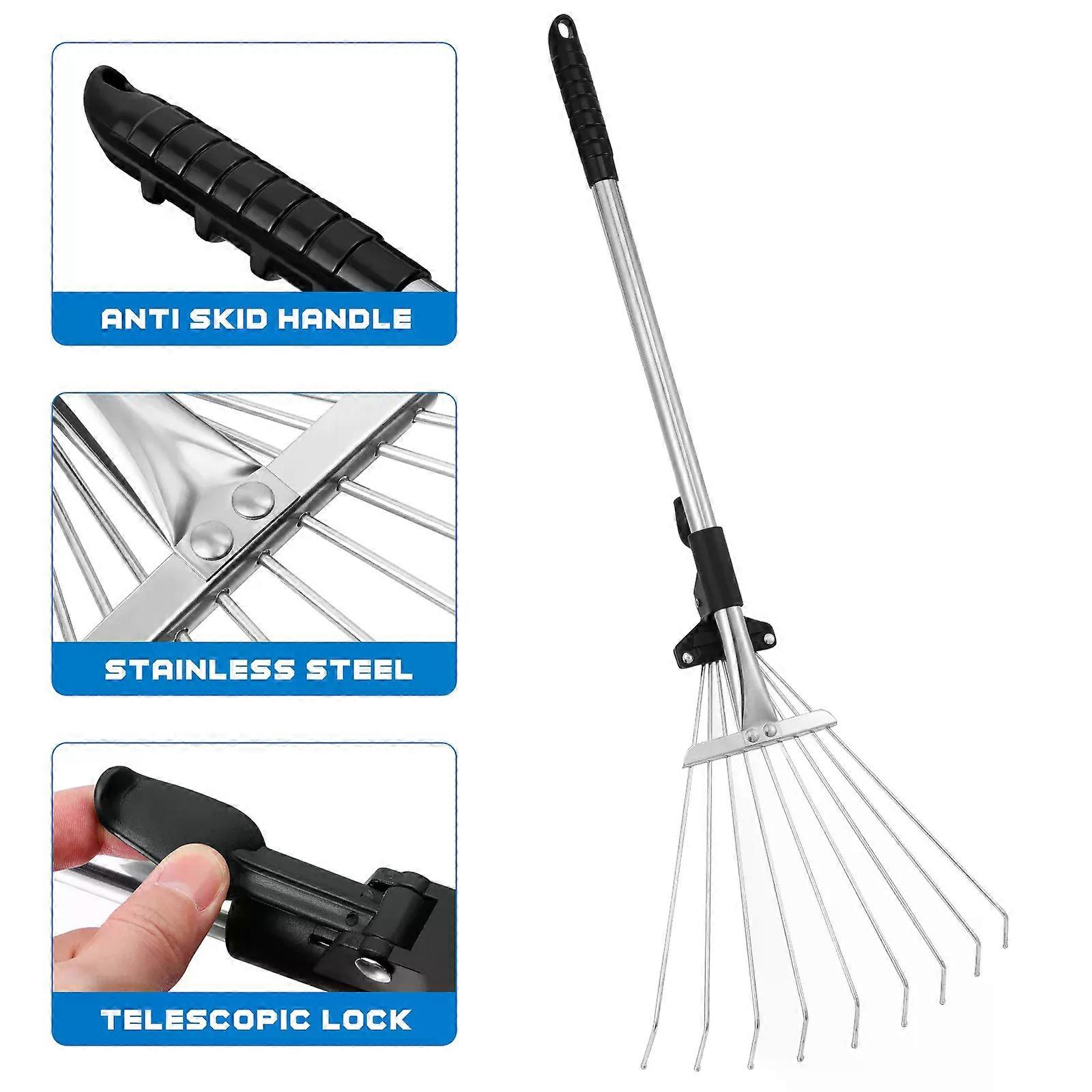Premium Telescopic Metal Rake Adjustable Leaf Rake For Yard Lawn Cleaning Gardening Tool Aluminum Handle Stainless Steel Teeth