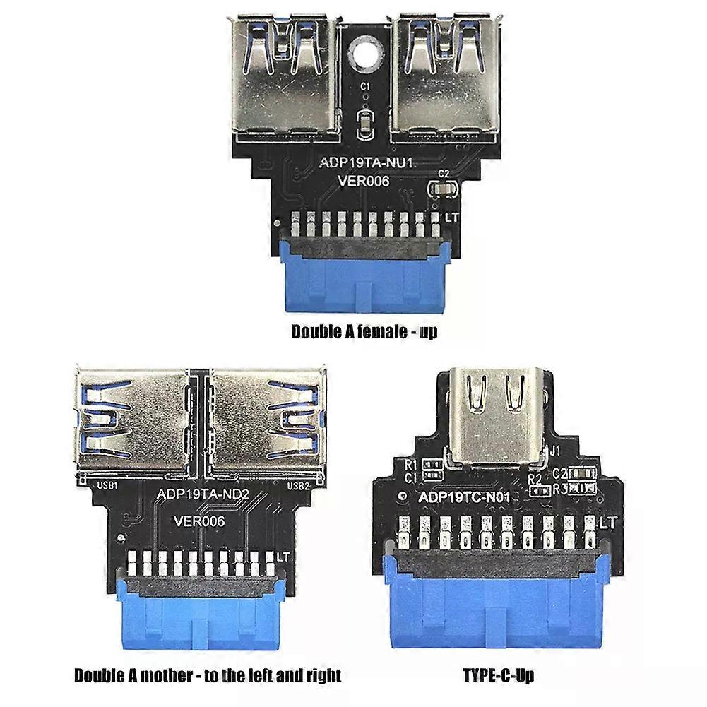 19Pin To Type C Dual USB 30 A Female Front Connector Converter 19 Pin Header to USB31/32 Type-C Adapter Plug-in Motherboard