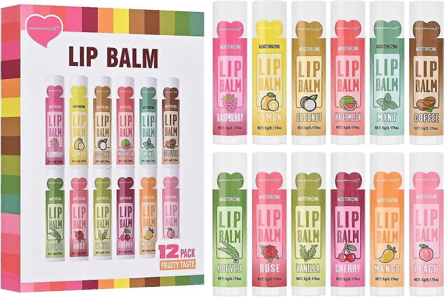 12 Pack Lip Balm, Natural Moisturizing Lip Balm Bulk, Moisturizing Lip Balms for Repairing Dry and Chapped Lips - 12 Flavors