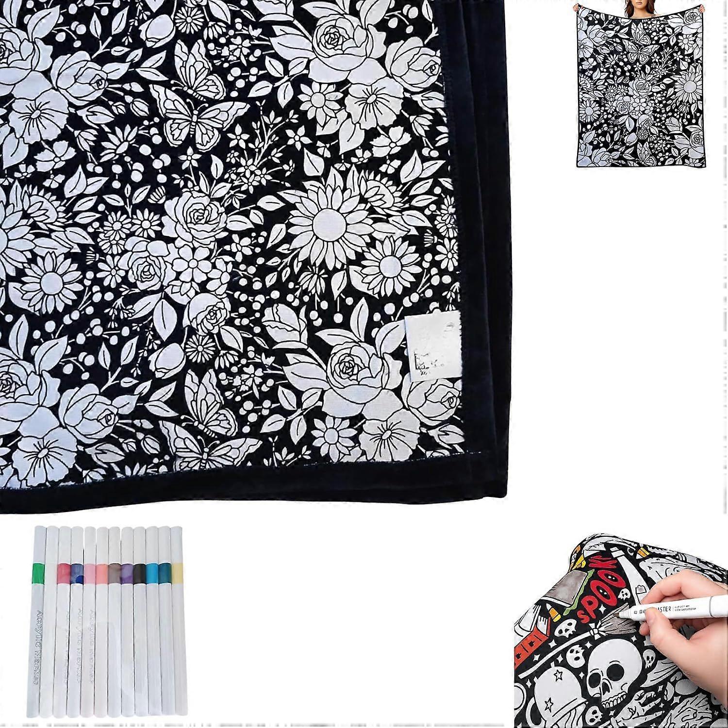 DIY Coloring Blanket, Coloring Blanket with Markers, Color Blankets for Adults, Creative Art Blankets, Holiday Decorations for Halloween Decor/Christm