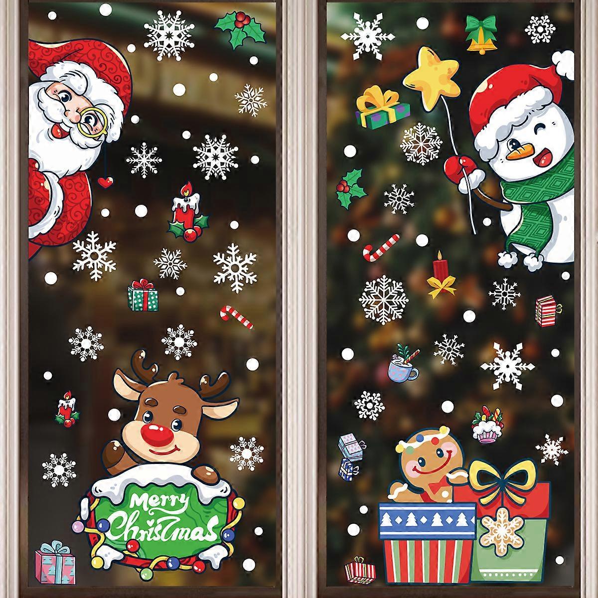 2026 Christmas Stickers Santa Claus Elk Snowflake Glass Stickers Hanging Ball Snowman Merry Christmas Static Stickers [4 Combinations] BQ (284-287)
