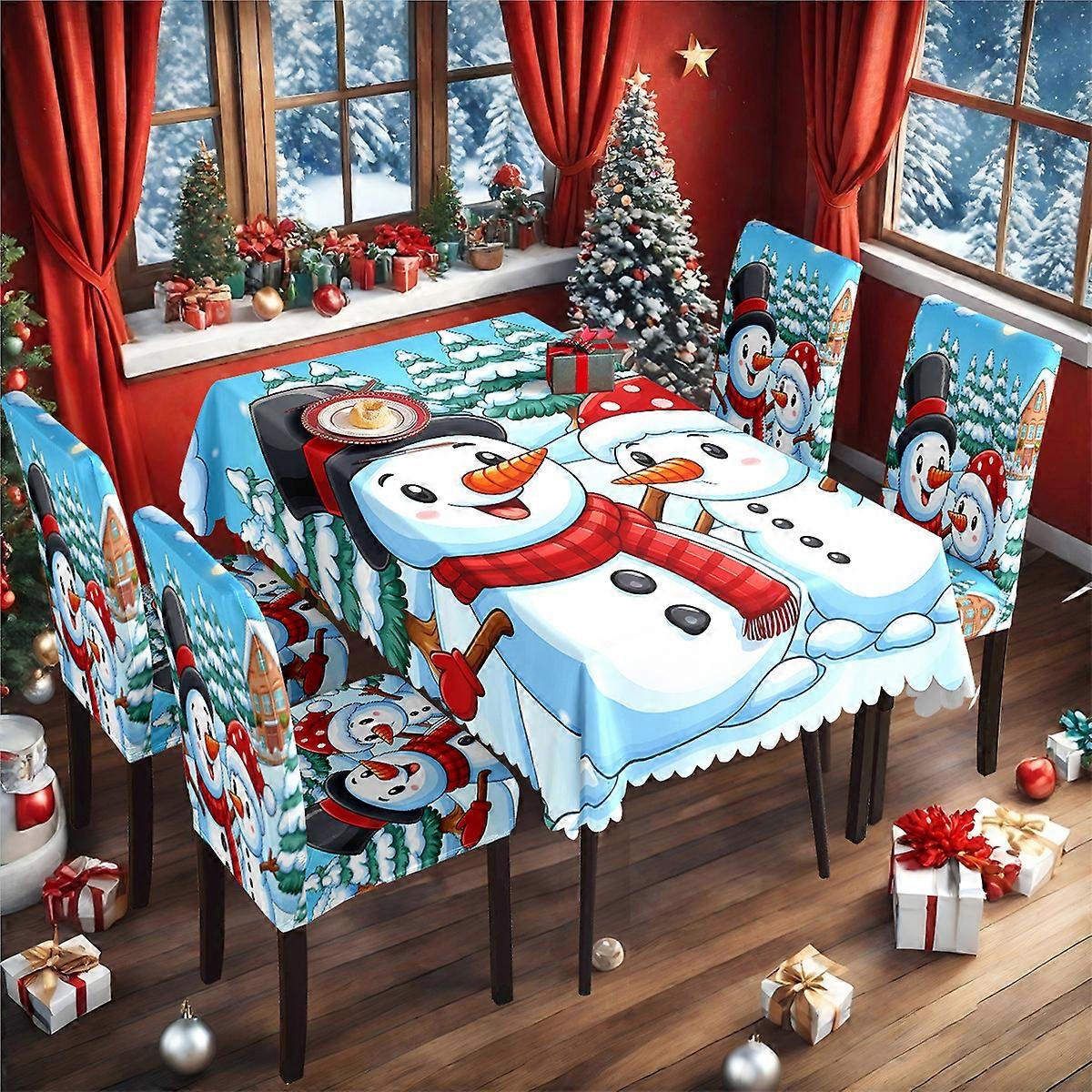 Original design classic blue Christmas snowman tablecloth tablecloth holiday decoration waterproof Christmas tablecloth chair cover TC-110 set