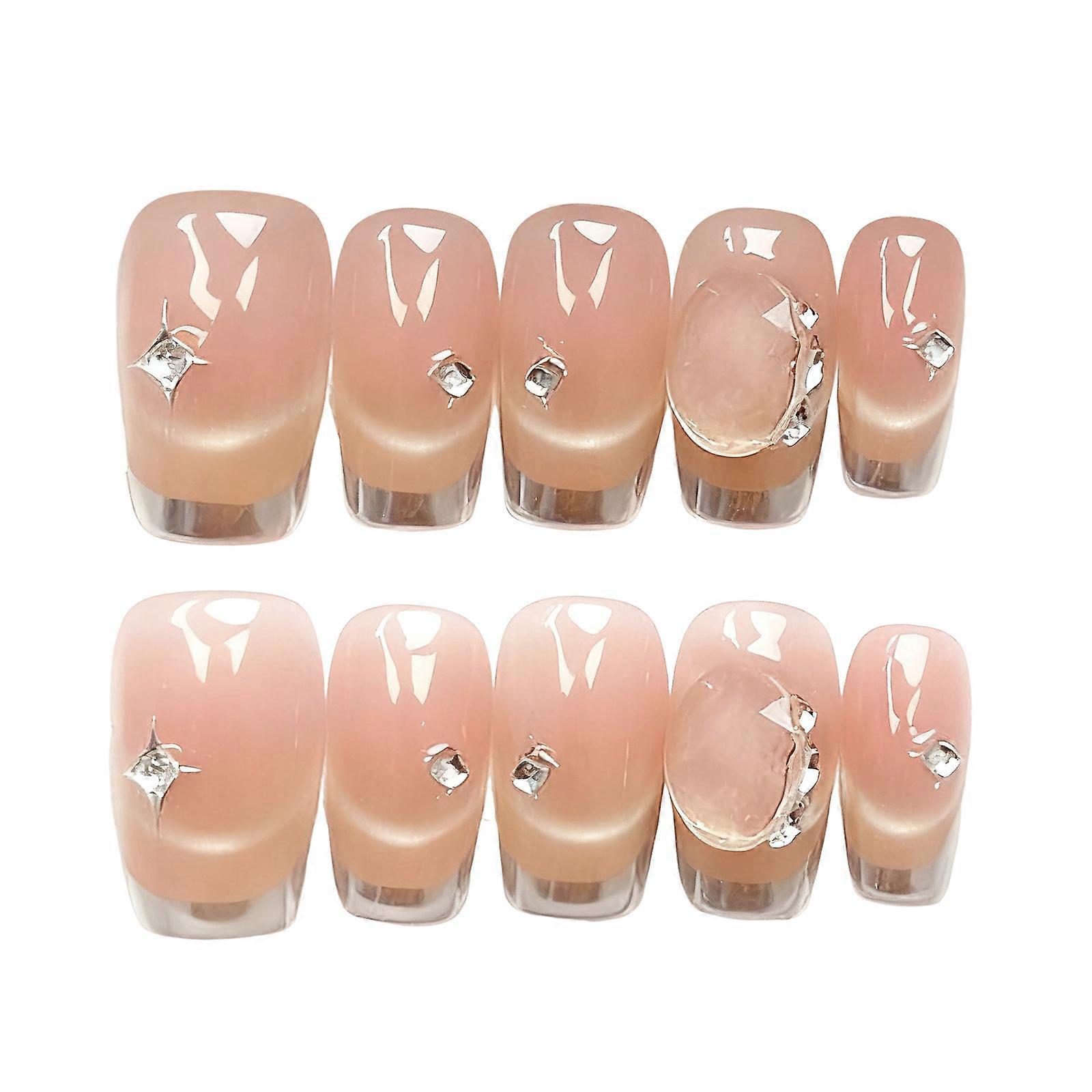10Pcs Press On Nails Hand Painted French Style Cat Eye Galaxy Design Artificial