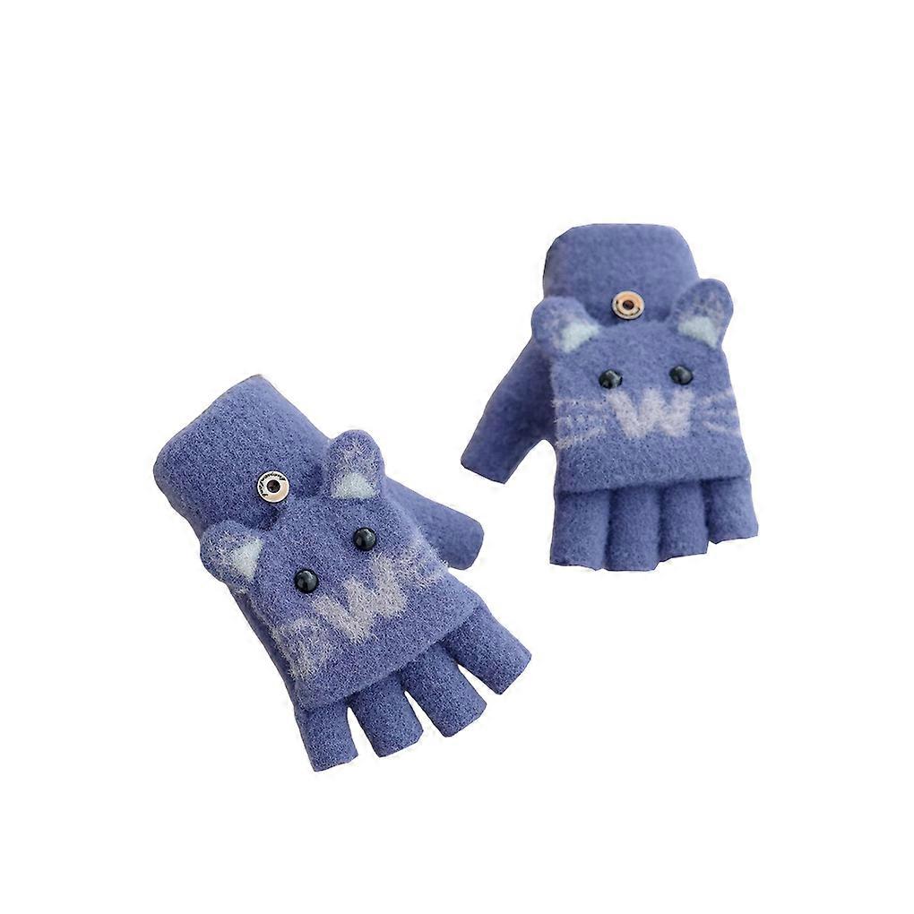 1 Pair Girls Warm Gloves Winter Knitted Outdoor Sports Mountain Bike Mittens