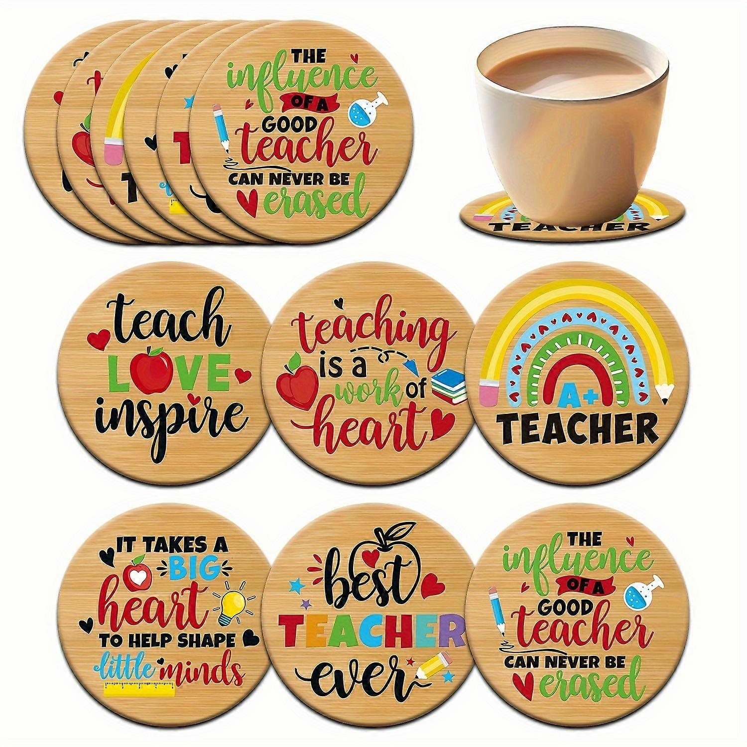 6-piece set of round wooden coasters with thankfulness quotes for Teacher's Day and Thanksgiving holiday gifts