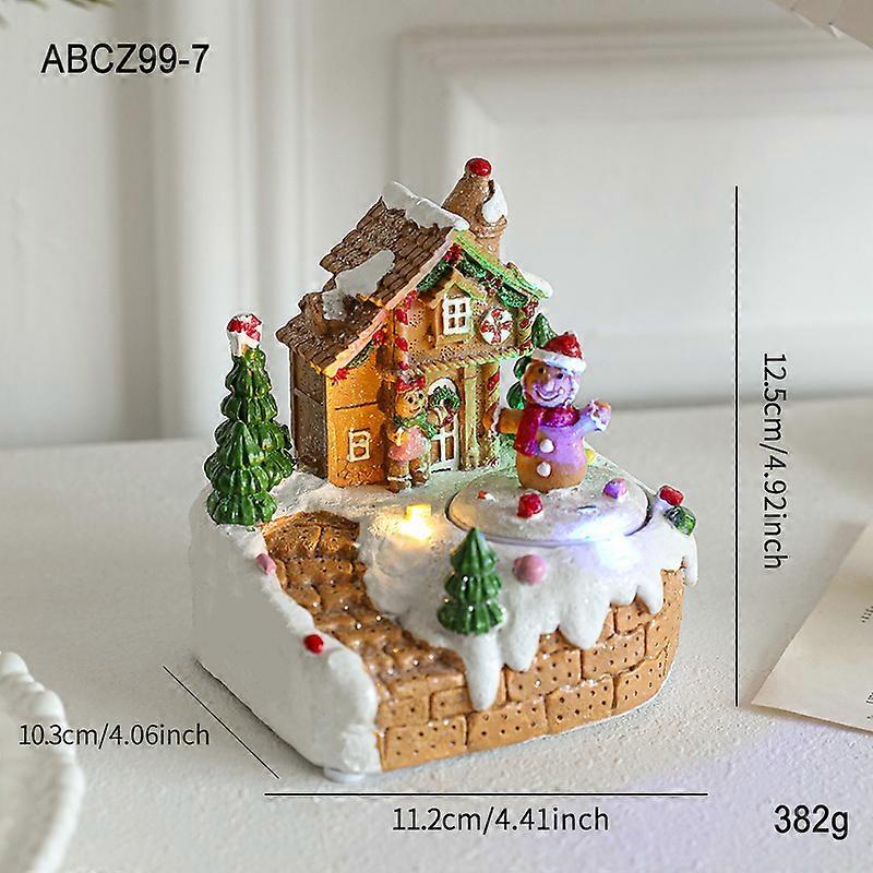 New Resin Christmas House Rotating Electric Music Box Gift Luminous House Decorative Ornaments Snow House Crafts Rotating Gingerbread Man (Suitable