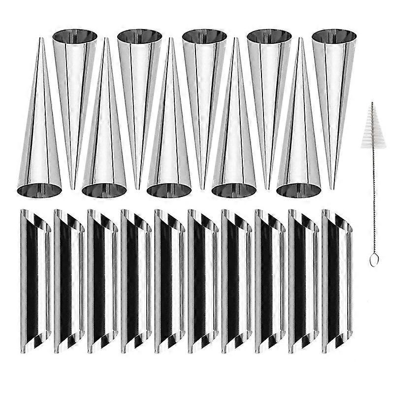 20Pcs Cream Horn Molds Stainless Steel Cone Tubular Shaped Mold for Cannoli Tubes with Cleaning Brus