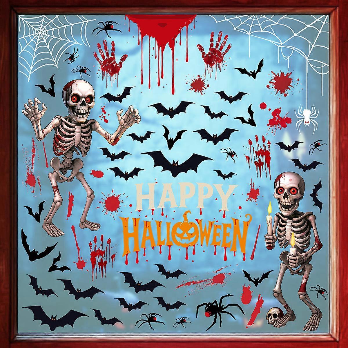 New Halloween Party Decorations Creative Skull Bat Static Sticker Pumpkin Blood Handprint Spider Glass Sticker [4 Combinations] BQ577+578+580+581