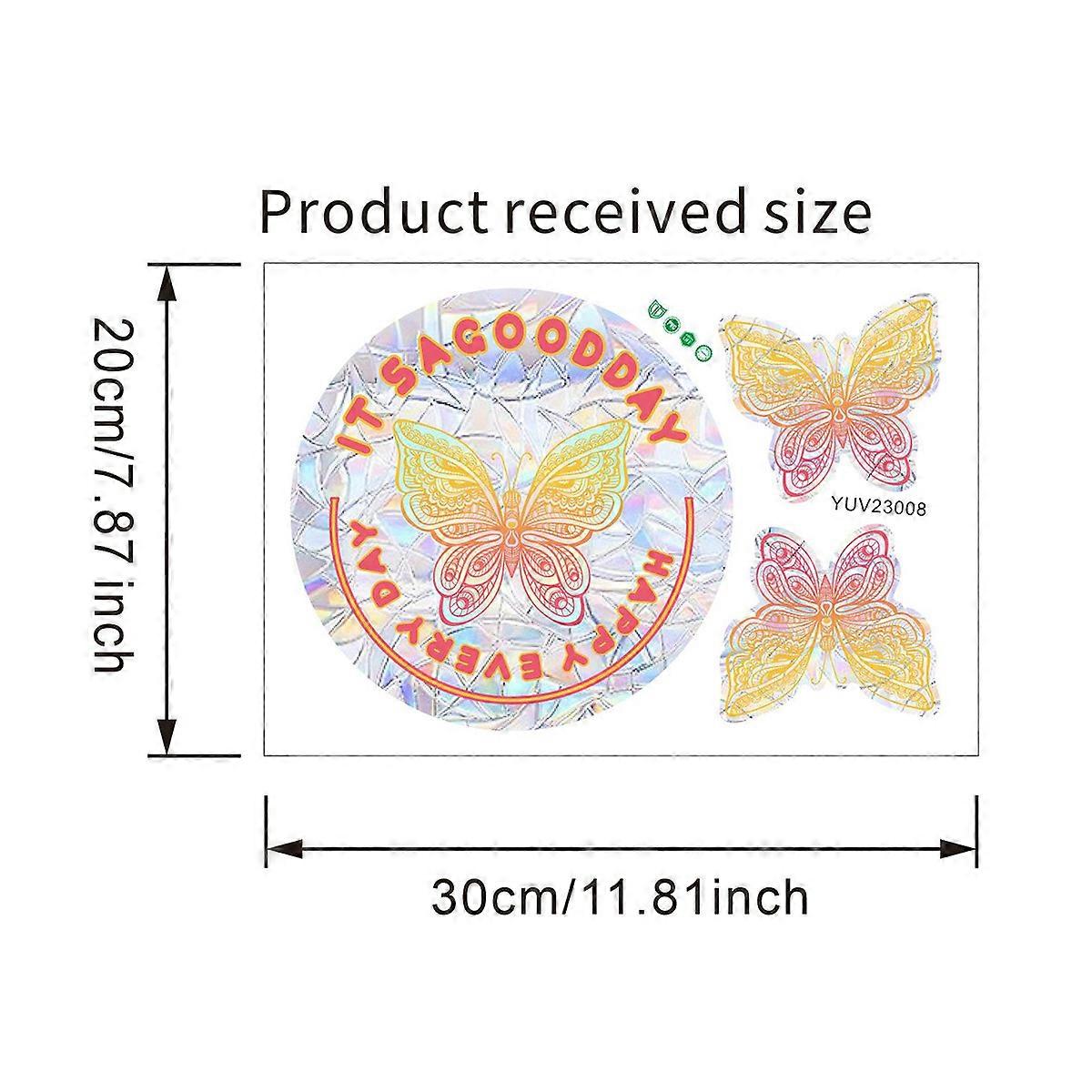 YUV23008 Sunshine Catcher Colorful Window Sticker Laser Butterfly Prism Static Glass Window PVC Anti-collision Window Sticker 30*20cm Layout Size OPP