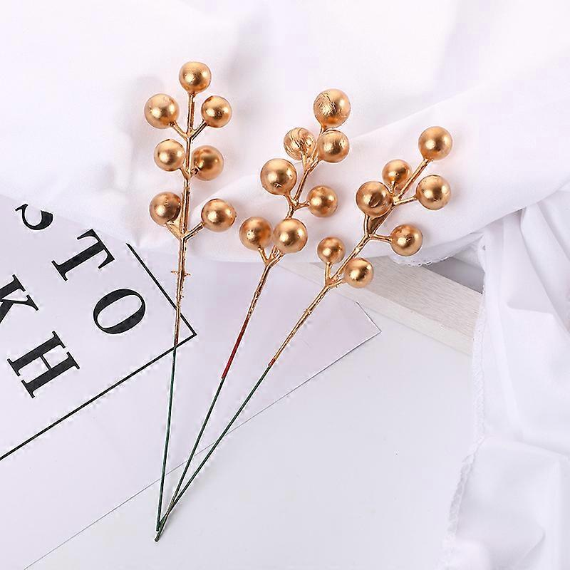 7 silver-gold simulation red fruit forks acacia beans fortune fruit berry string dried flowers and dried fruits shooting props decorations gold