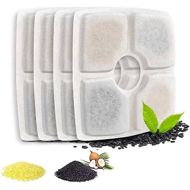 Product descriptionFeatures:Most of the filters in the market are made of activated carbon. But our pet fountain filters are made of high quality activated carbon, ion exchange resin and cotton mesh. The water is deeply purified and safer.High Quality AssuranceOur filters consists of premium activated carbon, ion exchange resin and cotton mesh, which are high quality assurance.Product Details:Compatible with 2.5L square cat water fountainFilters size:4.92*1.3inch.Ion exchange resin- softens tap water.Activated carbon removes the odors, keeps the water tasting fresh.Cotton mesh- thoroughly captures hair, sediment and debris.Notes:Please rinse filter with water thoroughly before use.Replace it every 2-4 weeks to maintain water freshness.Replace more frequently with multiple pets using the fountain.A small amount of carbon dust may be released for the life of filter which is not harmful to your pet.