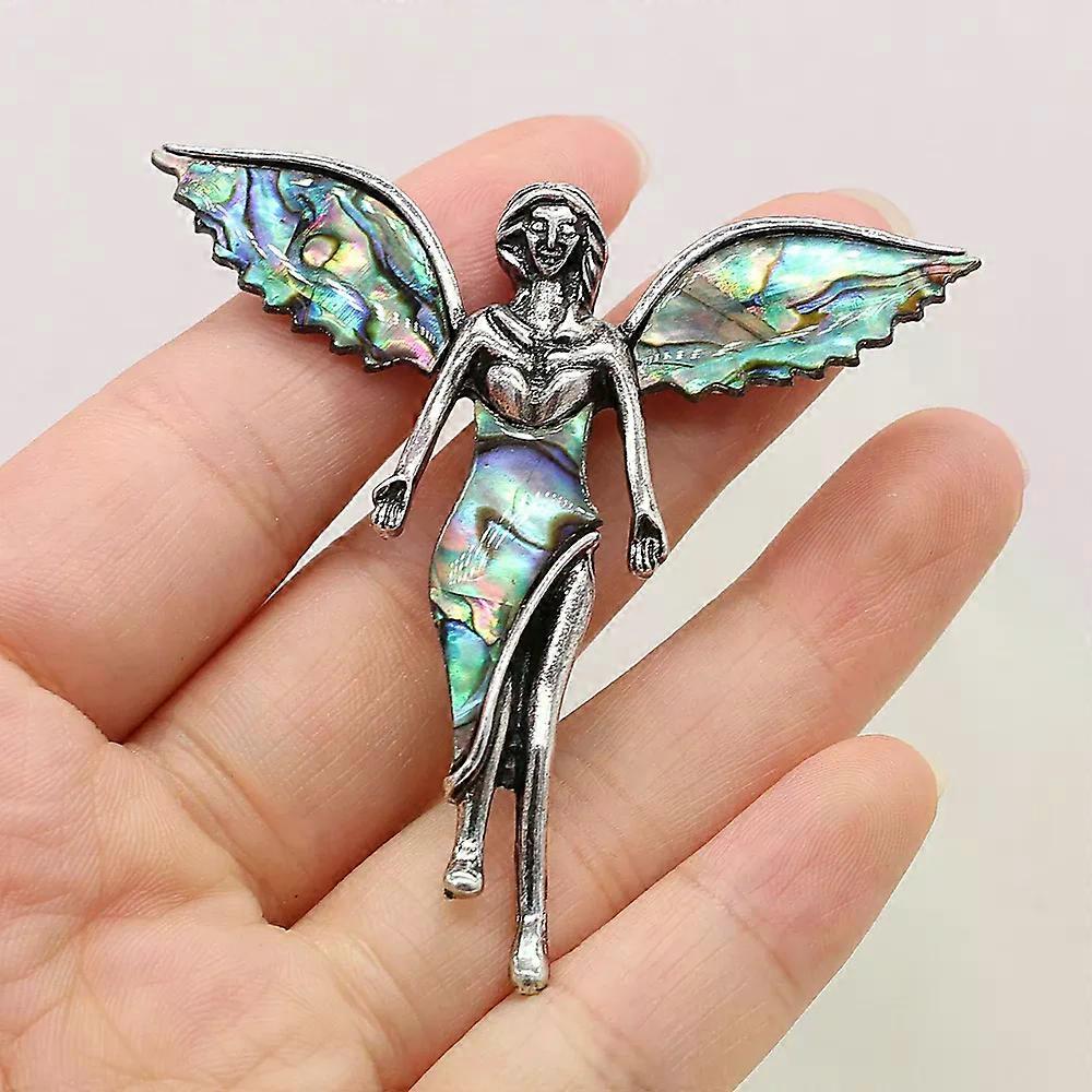 1pc Natural Stone Shell Alloy Pendant Angel Wing Shape Abalone Shell Brooch Charms for Jewelry Making DIY Necklace Accessories