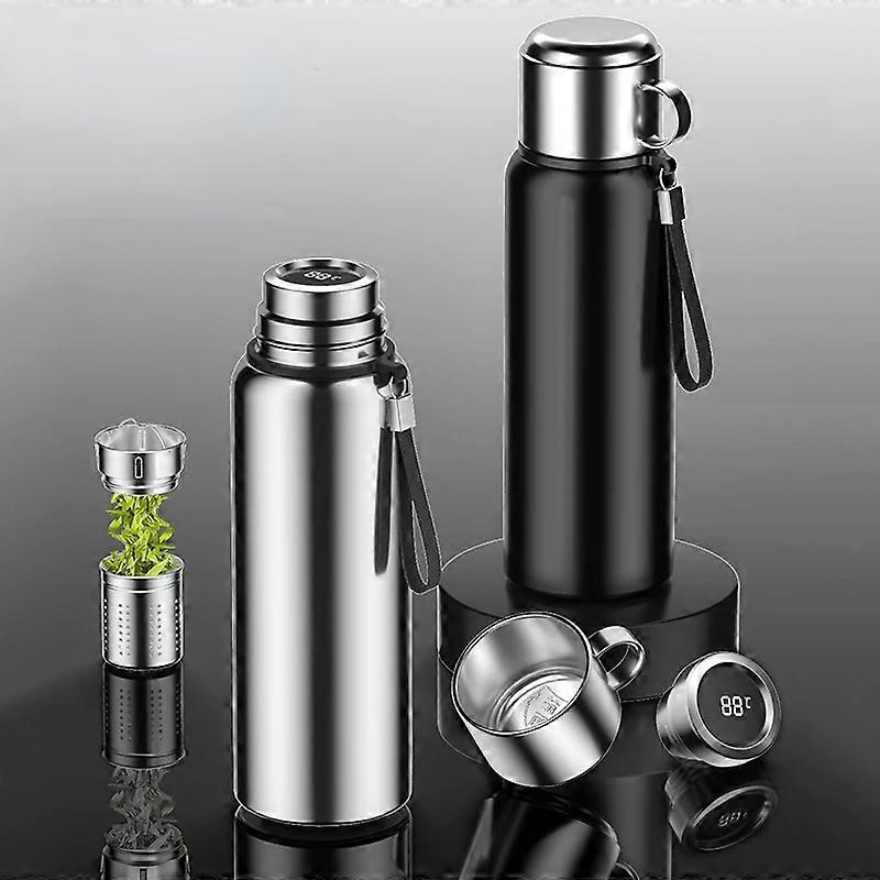 Stainless Steel Smart All-Steel Vacuum Cup – Large Capacity, Tea and Water Separation, Portable Outdoor Sports Thermos Bottle