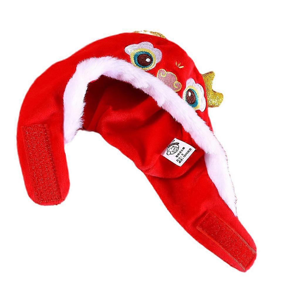 4Pcs Dragon Head Pet Hat for Cats Plush Red New Year Dress Up