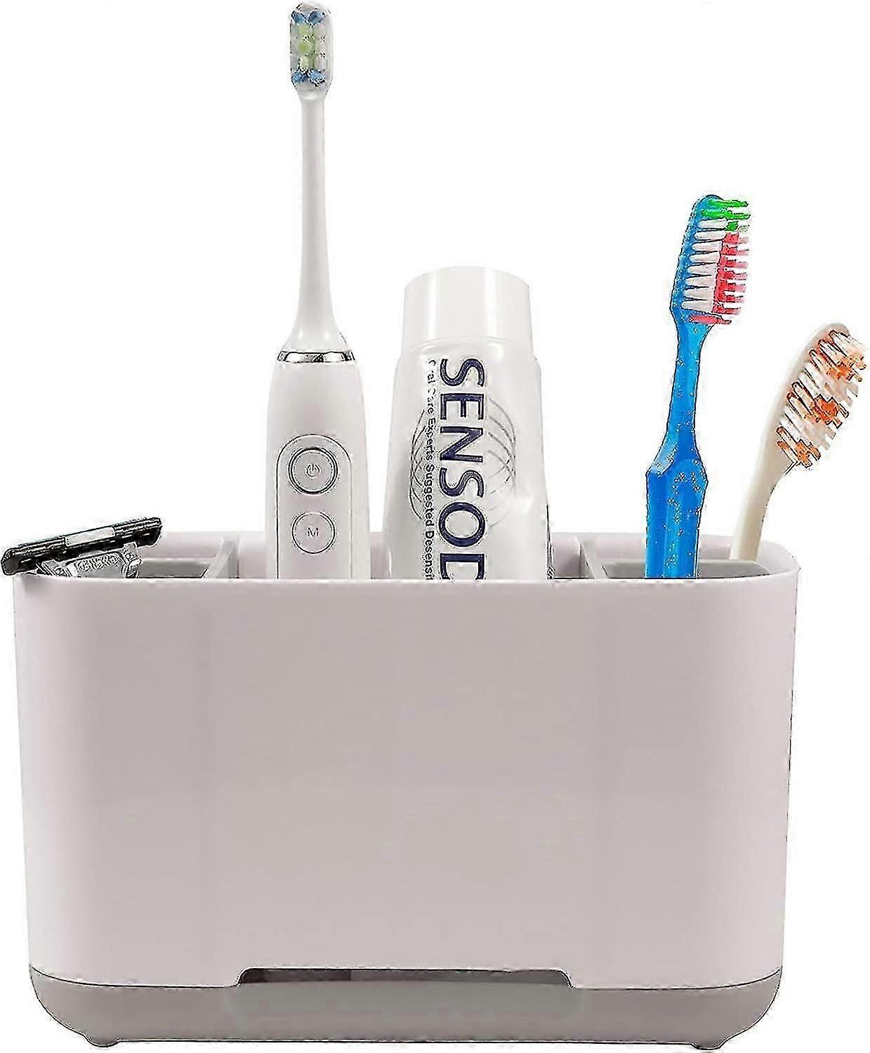 Gray Bathroom Toothbrush Holder with 2 Dividers and Non-Slip Base for UK Families