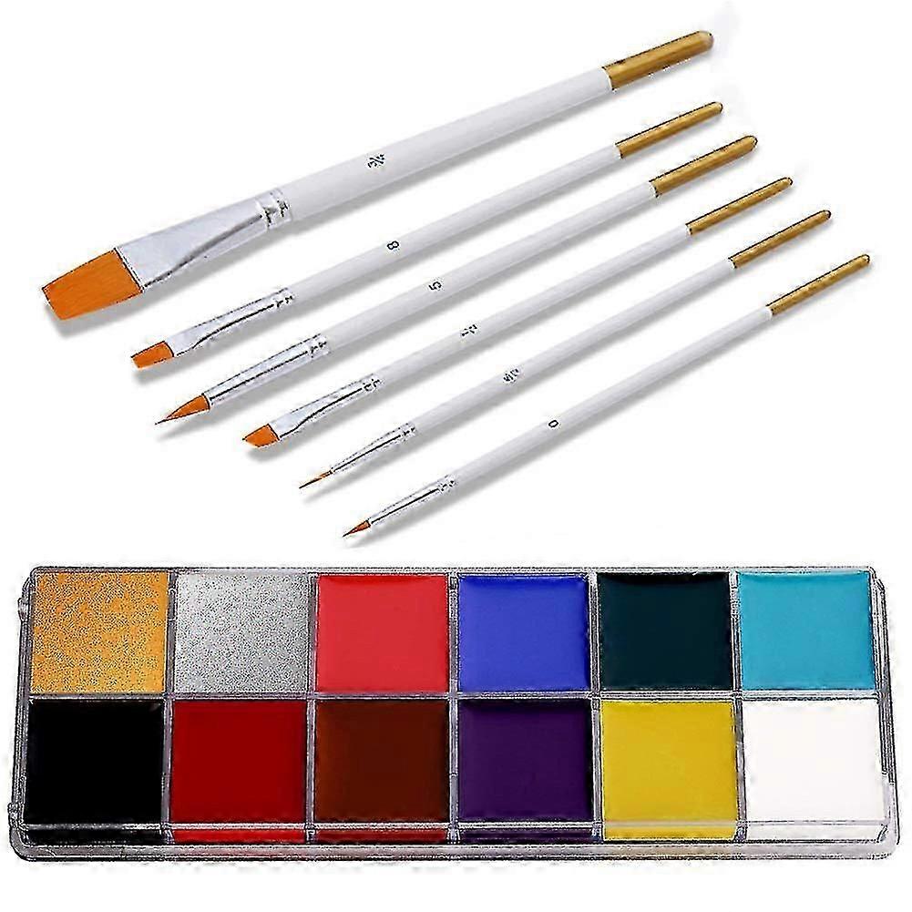 12-Color Face and Body Paint Kit with 6 Pens - Ideal for Halloween and Party Makeup