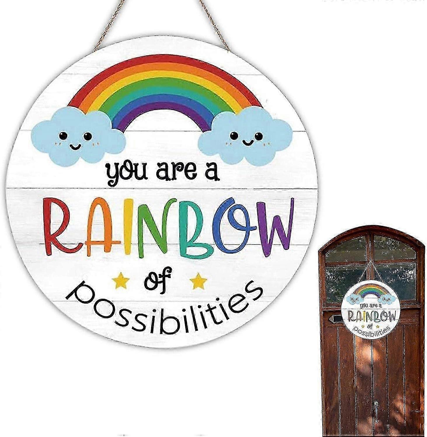 Rainbow Wooden Outdoor Sign with Inspirational Quote for UK Classrooms and Creative Wall Art