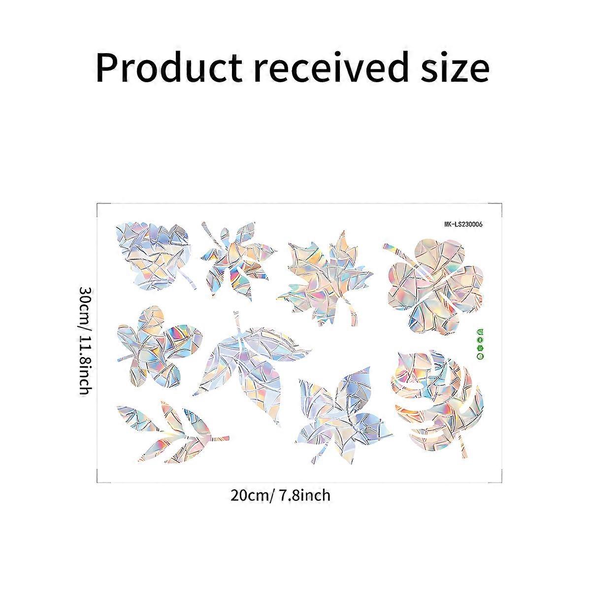 MK-LS230006 Sunshine Catcher Colorful Rainbow Prism Electrostatic Glass Sticker Leaf Laser Anti-collision Window Sticker 30*20cm Format Size OPP Bag