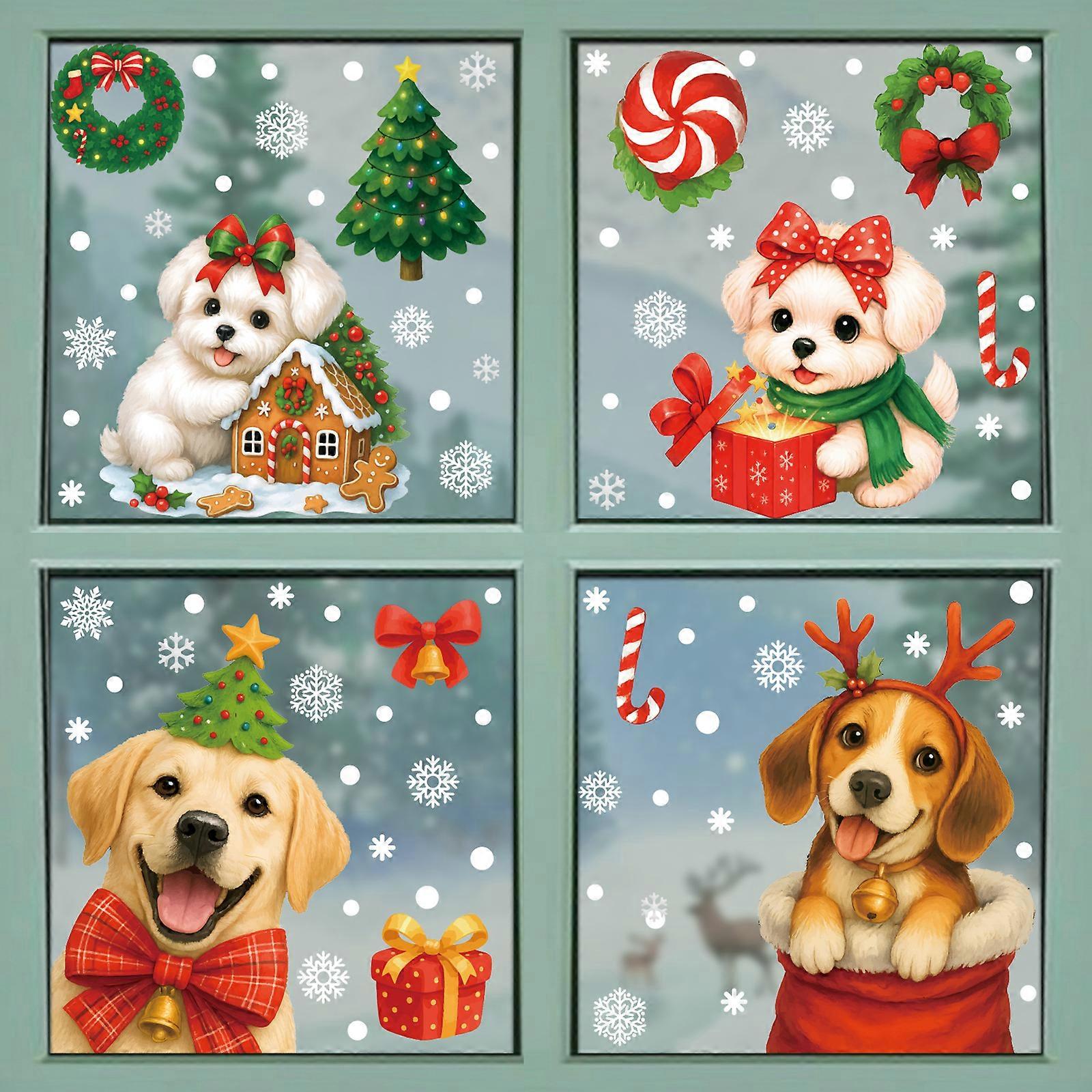 Christmas puppy stickers for glass window decoration, Christmas atmosphere decoration, window wreath, gift box static stickers [4 combinations]