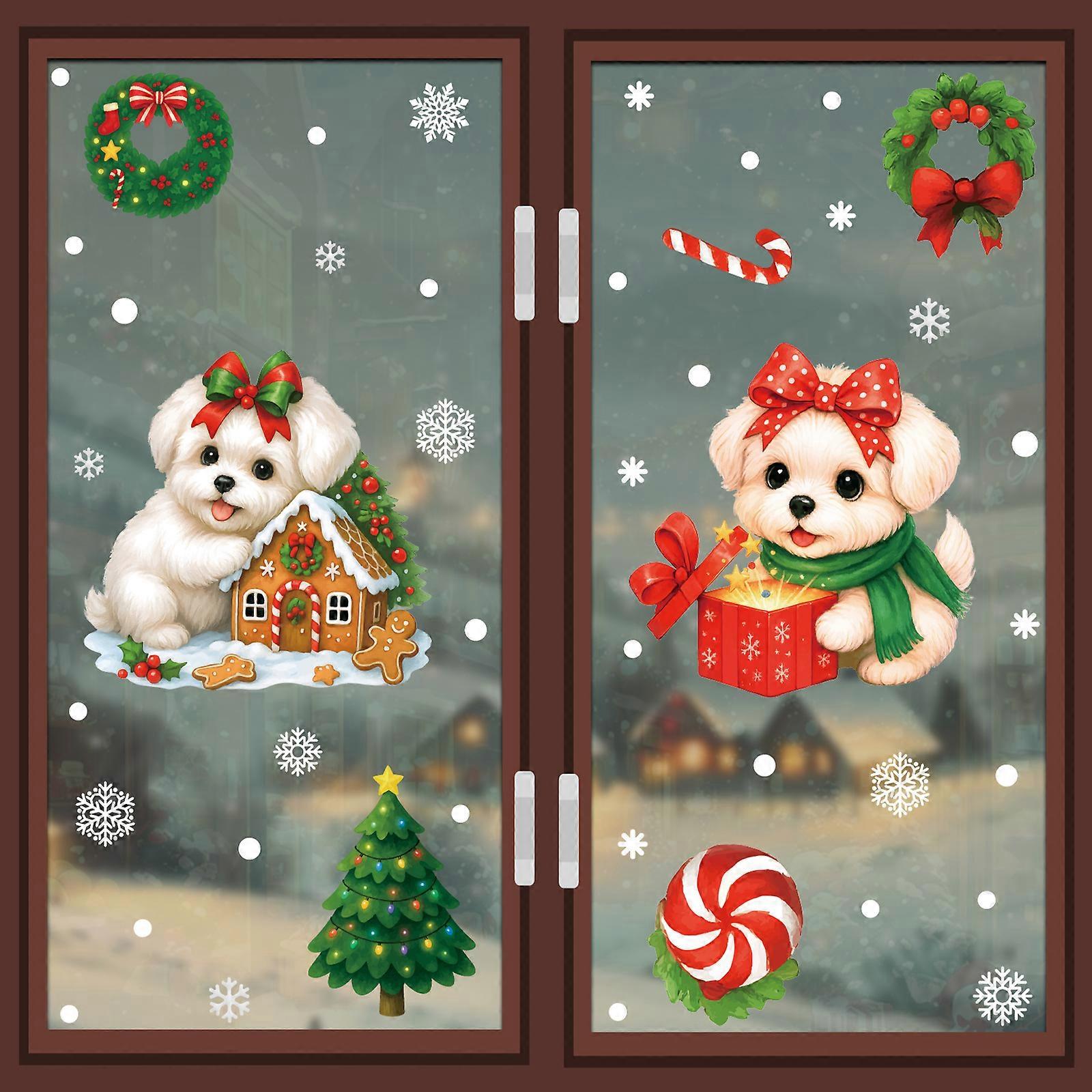 Christmas Decorations, Gift Boxes, Candy, Static Stickers, Shopping Mall Window Decorations, Christmas Wreaths, Puppy Glass Stickers [2 Combinations]